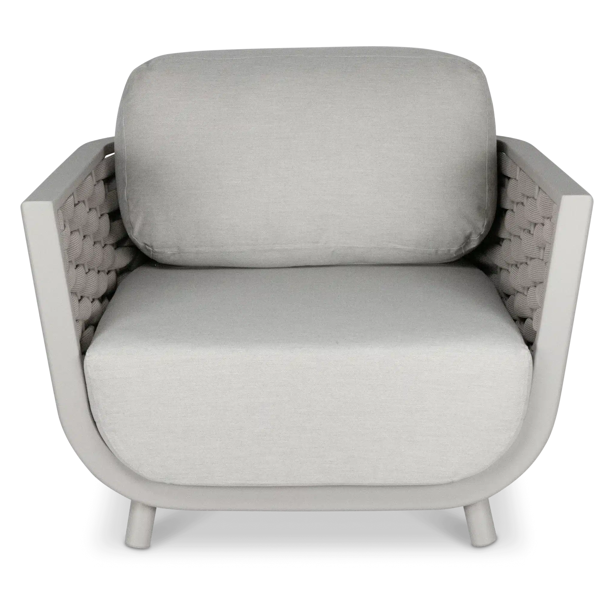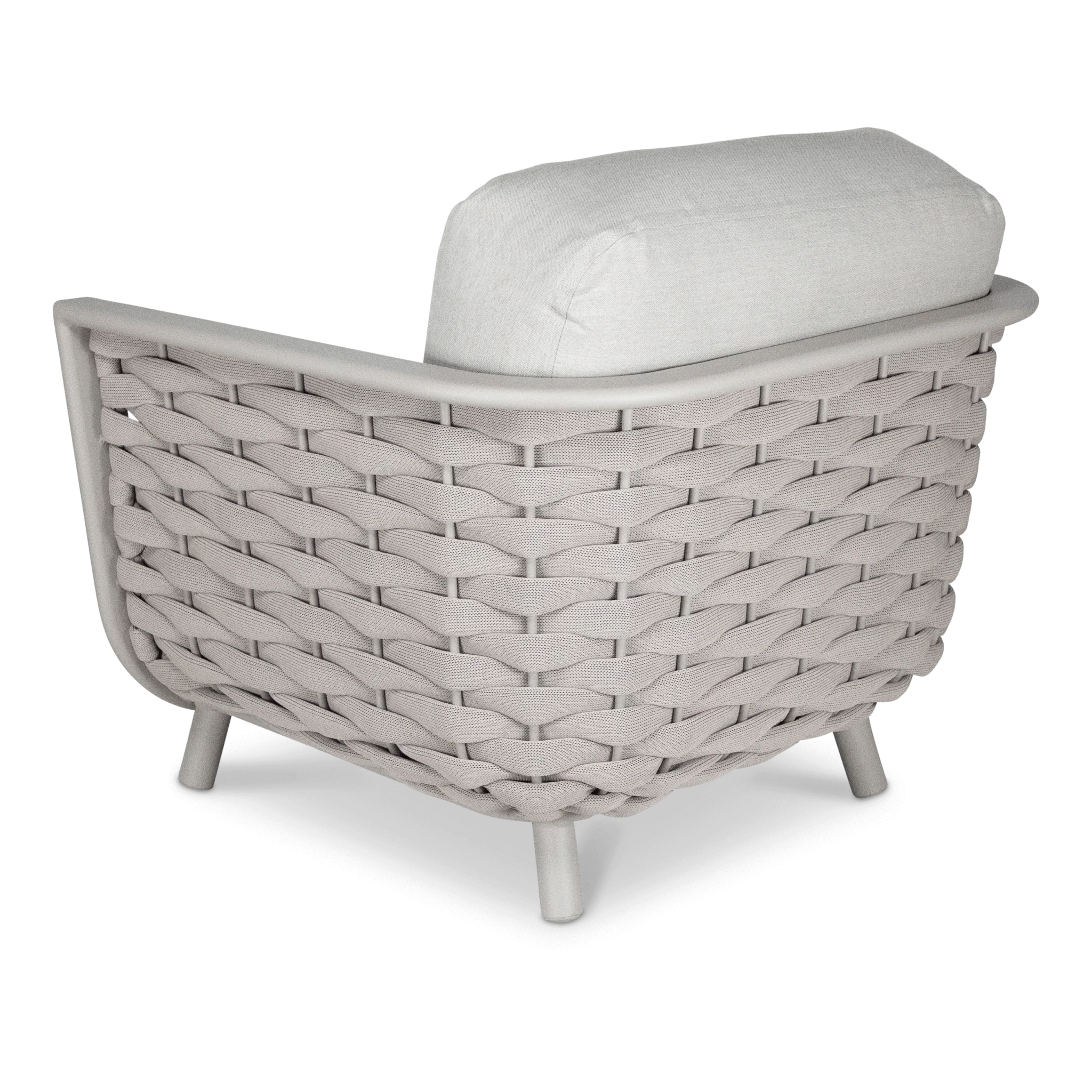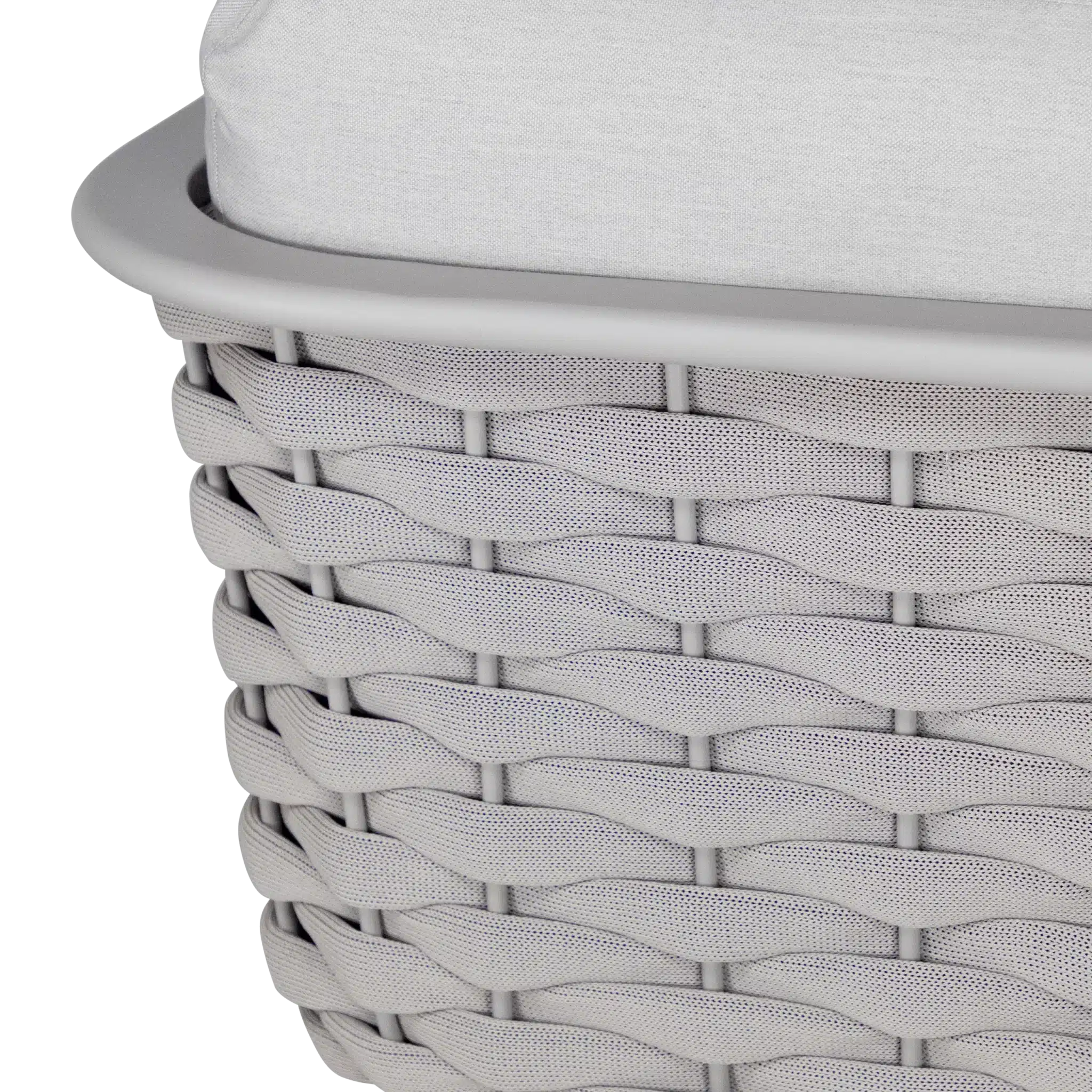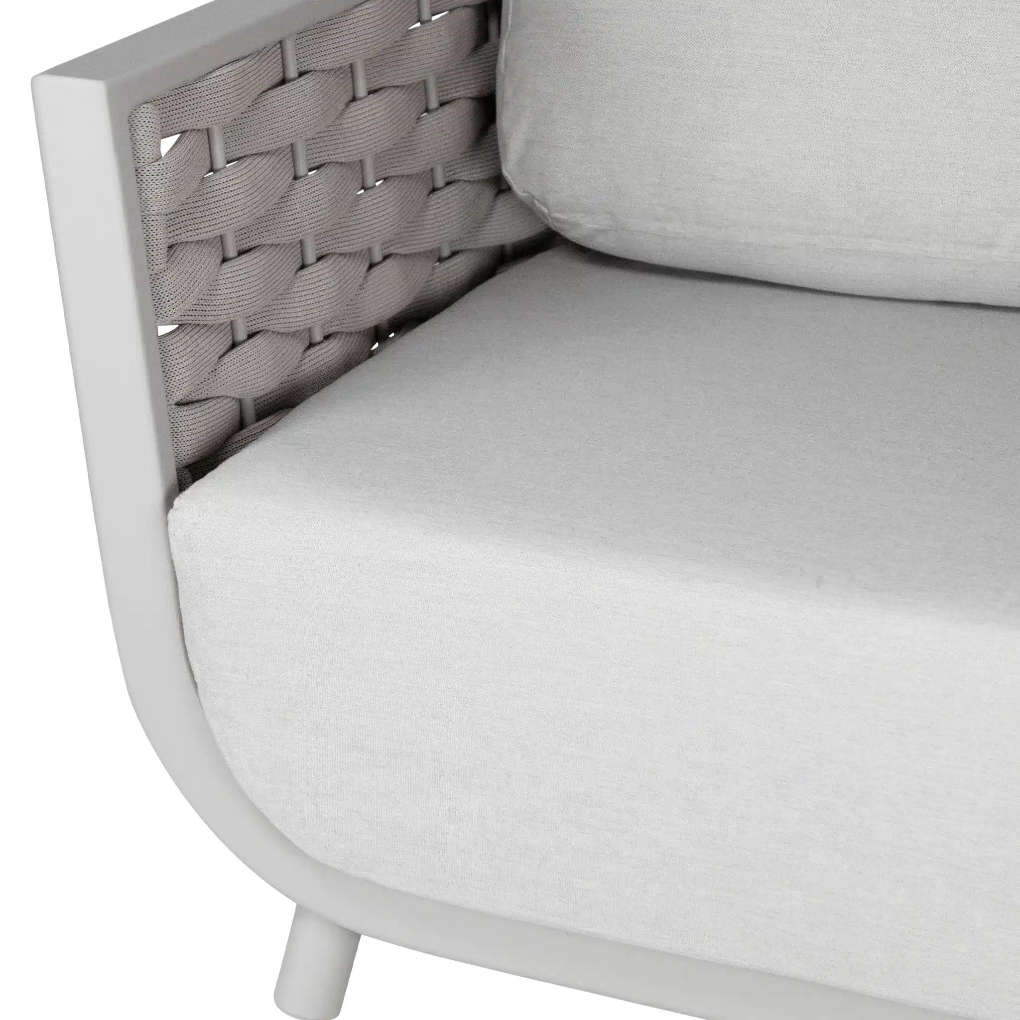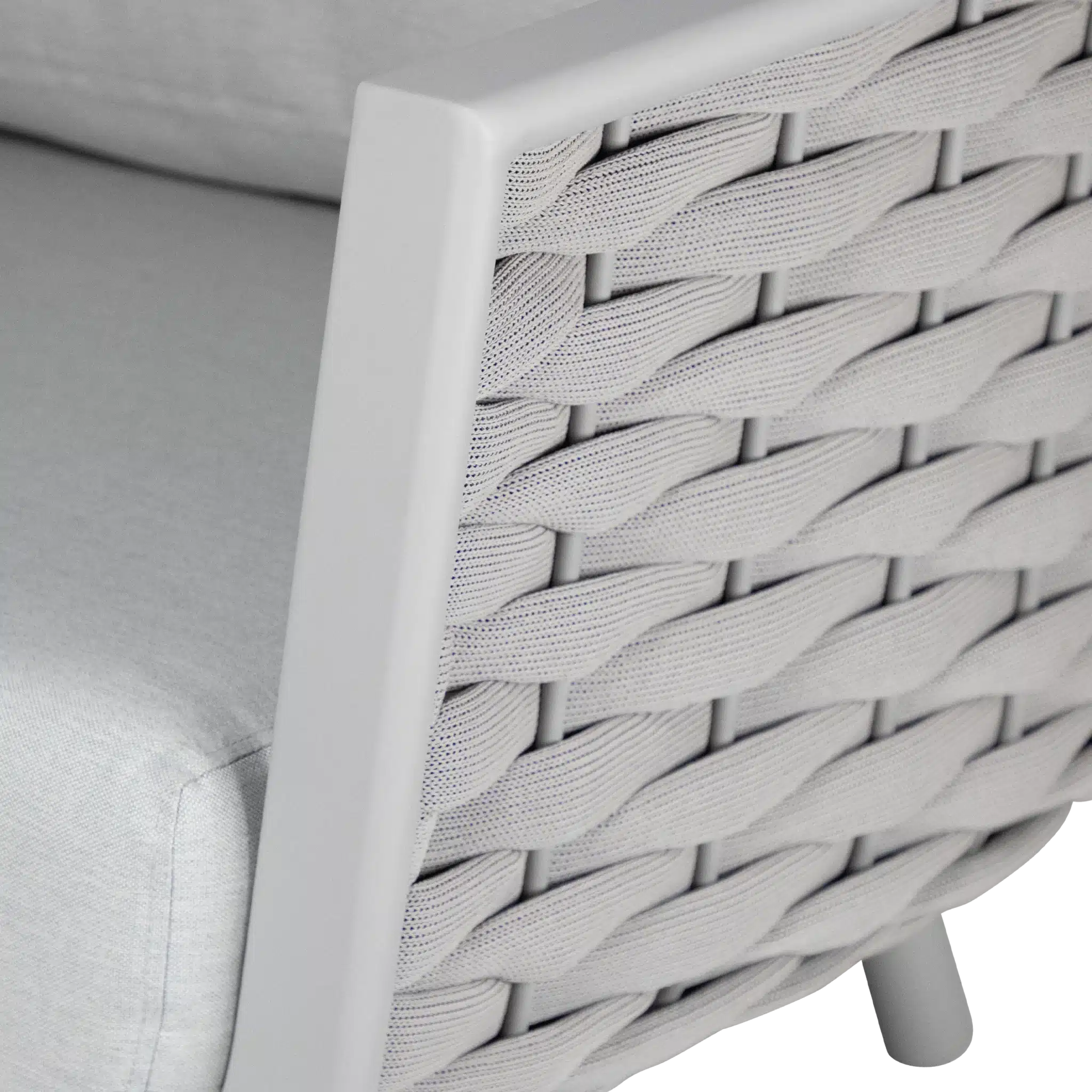 שלדת אלומיניום אל-חלד צבועה בתנור בשילוב קליעת חבלי סלינג UV יוקרתית במראה מודרני.
