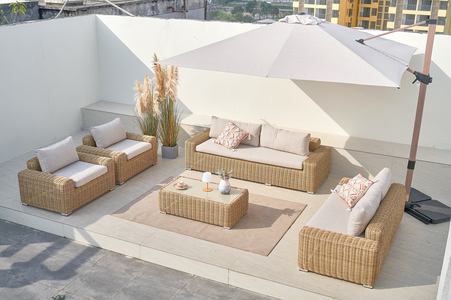 המערכת בנויה משלדת אלומיניום מחוזקת בחיפוי ראטן סינטטי עגול דמוי טבעי.