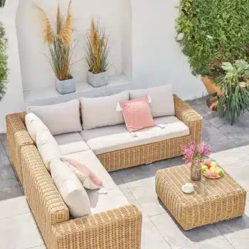 צבעים: ראטן דמוי טבעי, ריפוד קרם אפרפר.