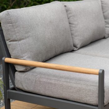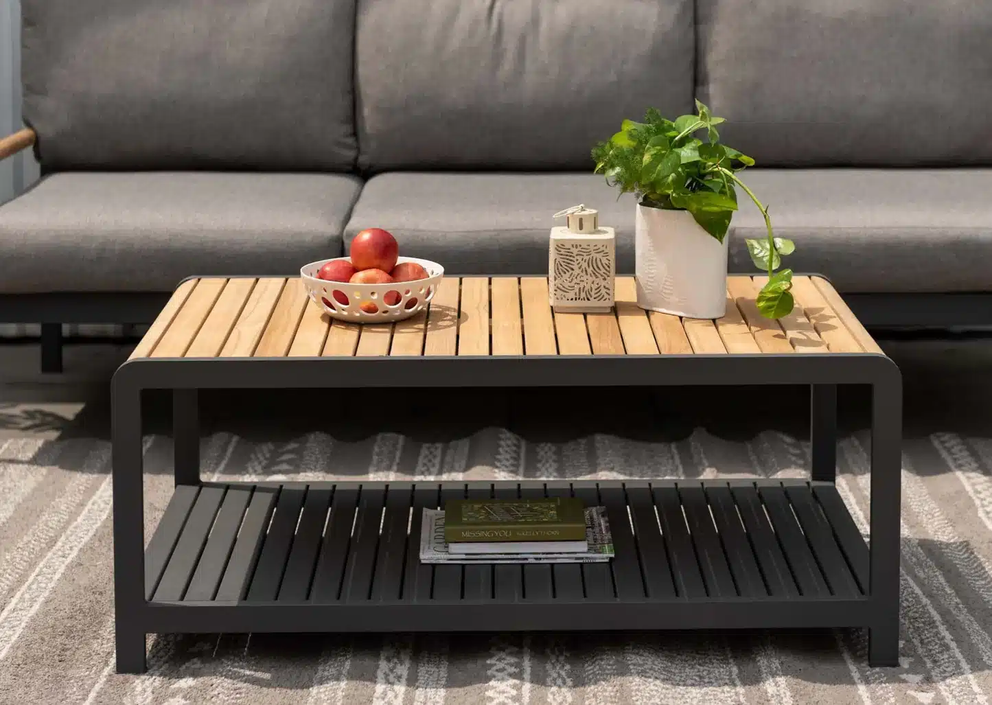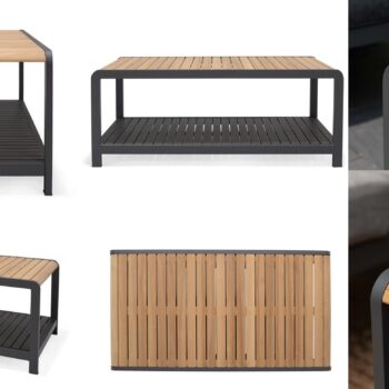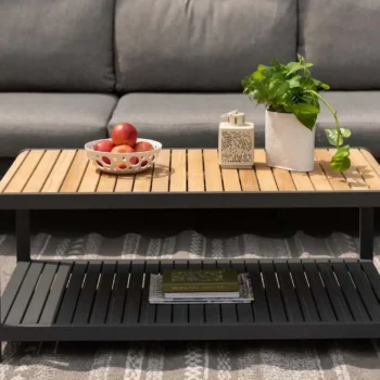 שולחן אלומיניום מלבני בשילוב לוחות עץ טיק.