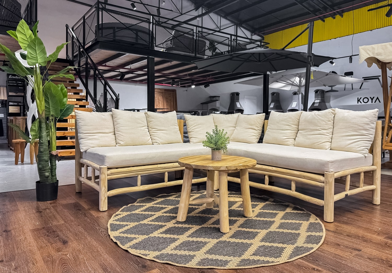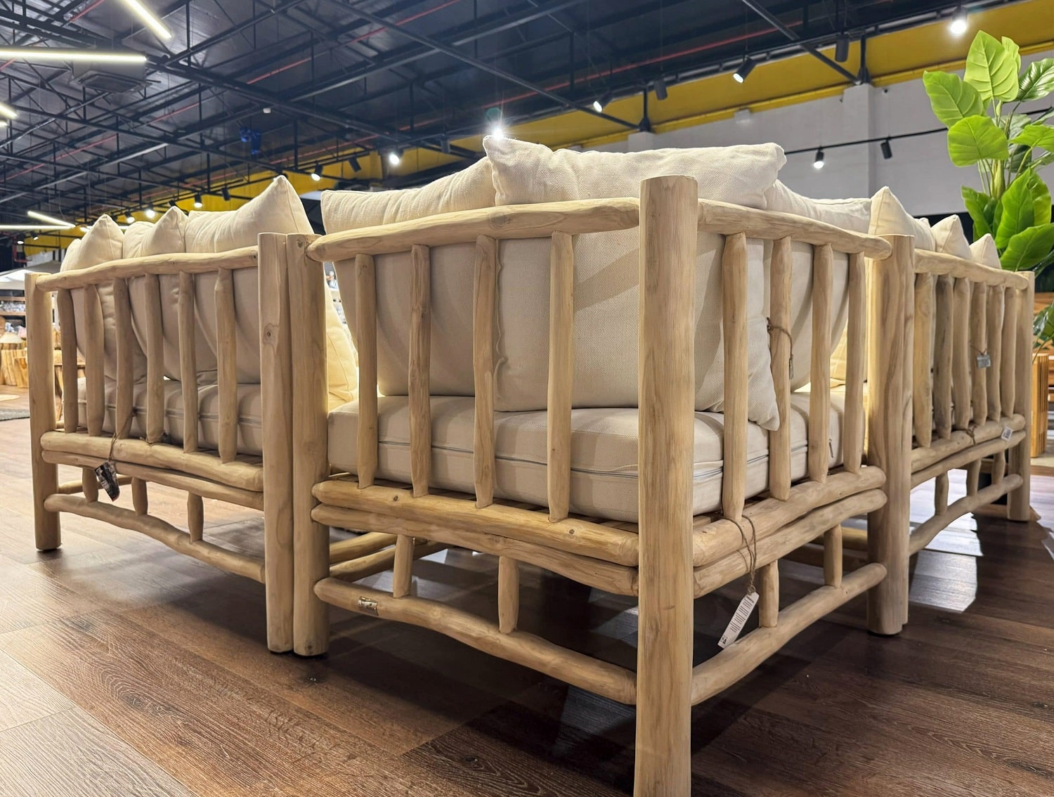 המערכת בנויה מגזעי טיק בשילוב ריפוד רחיץ.