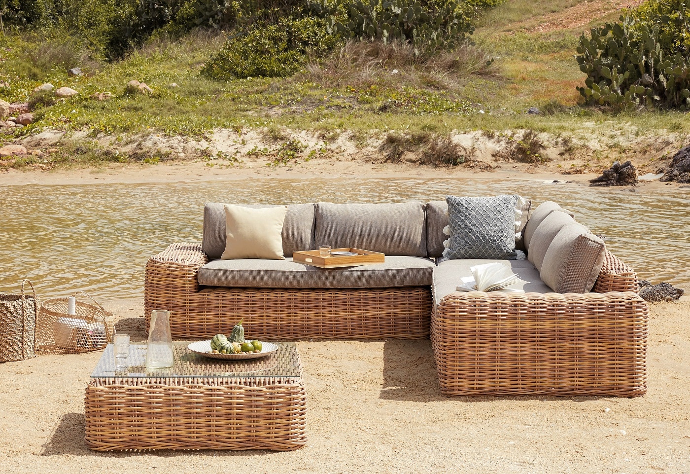 צבעים: ראטן דמוי טבעי, ריפוד אפור .