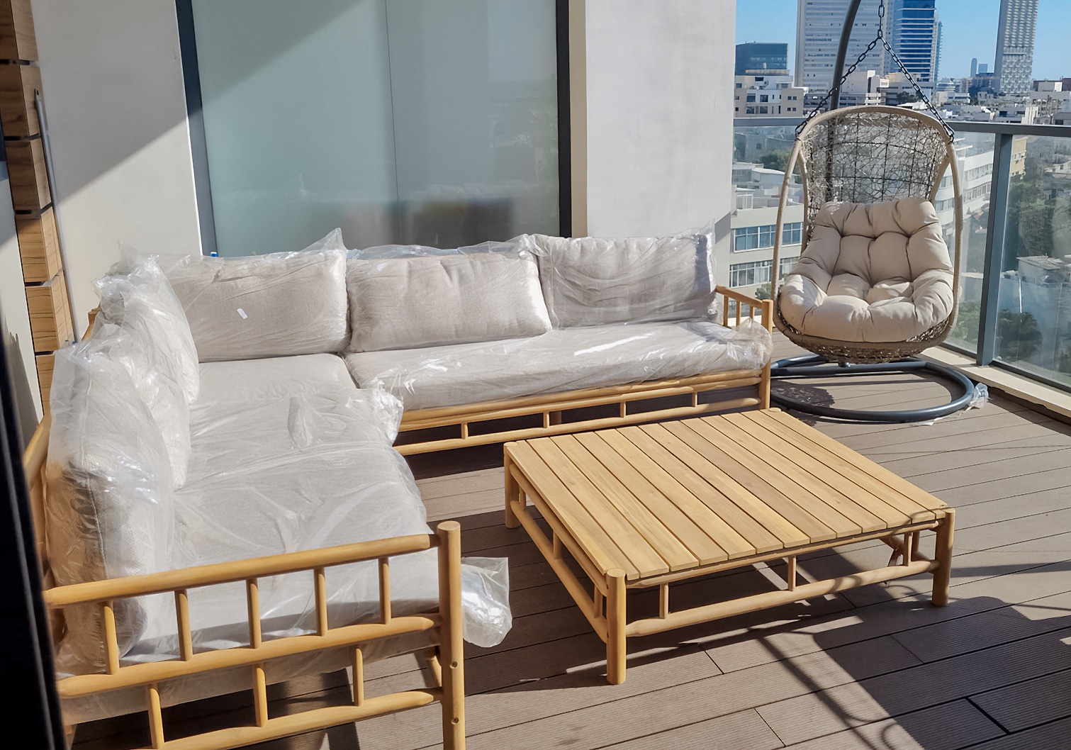 המערכת בנויה משלדת עץ שיטה מלא בגימור גזעי טיק.
