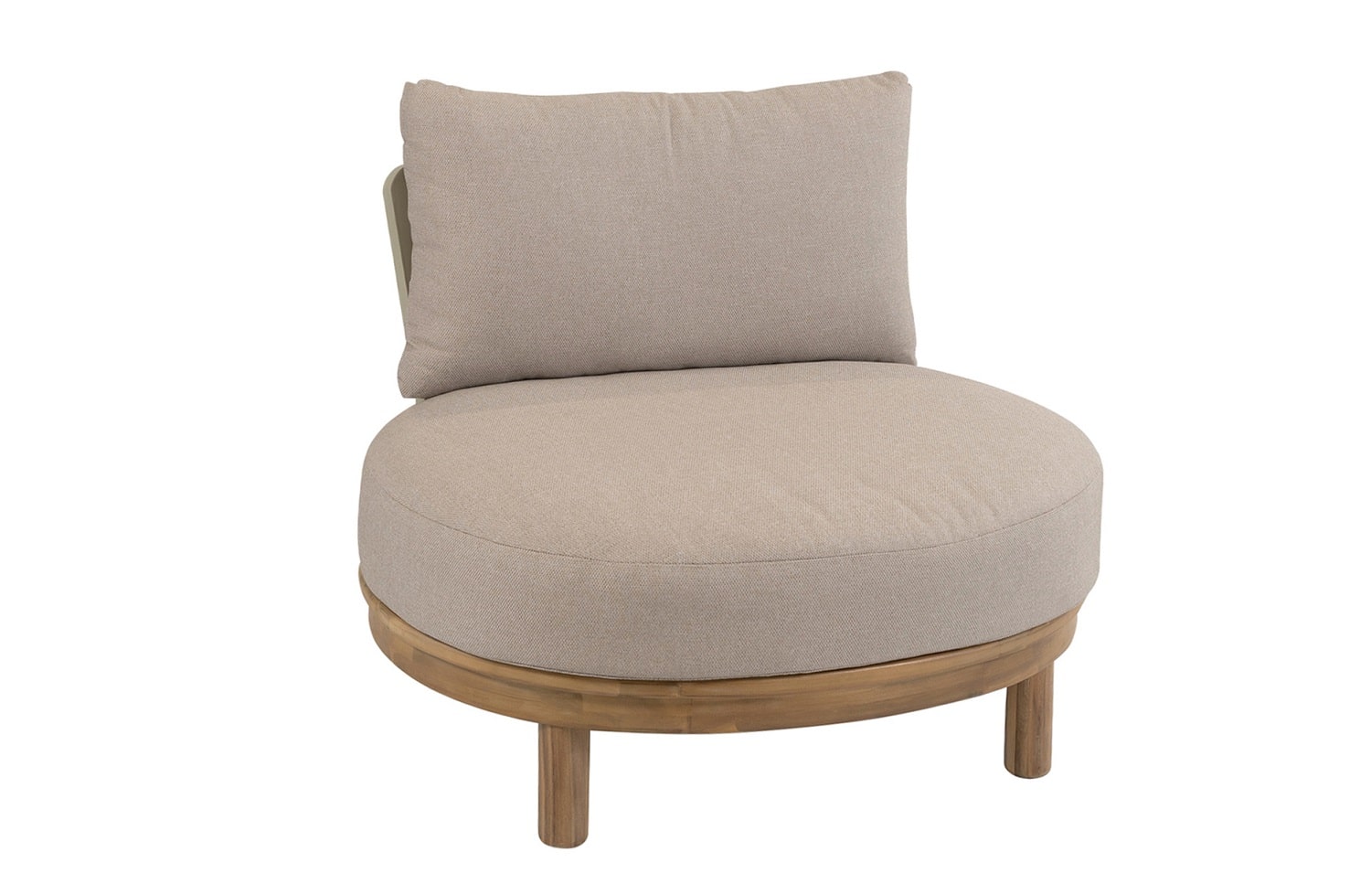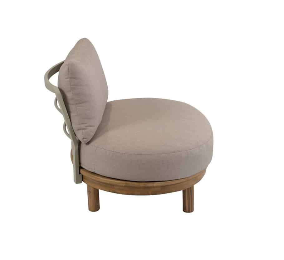 הבסיס עשוי עץ שיטה מלא בגימור טיק בהיר, עם רגליים מעוגלות שמעניקות תחושת קלילות במיוחד בשילוב גב המערכת אשר עשוי אלומיניום “אל חלד” בגוון אבן.