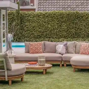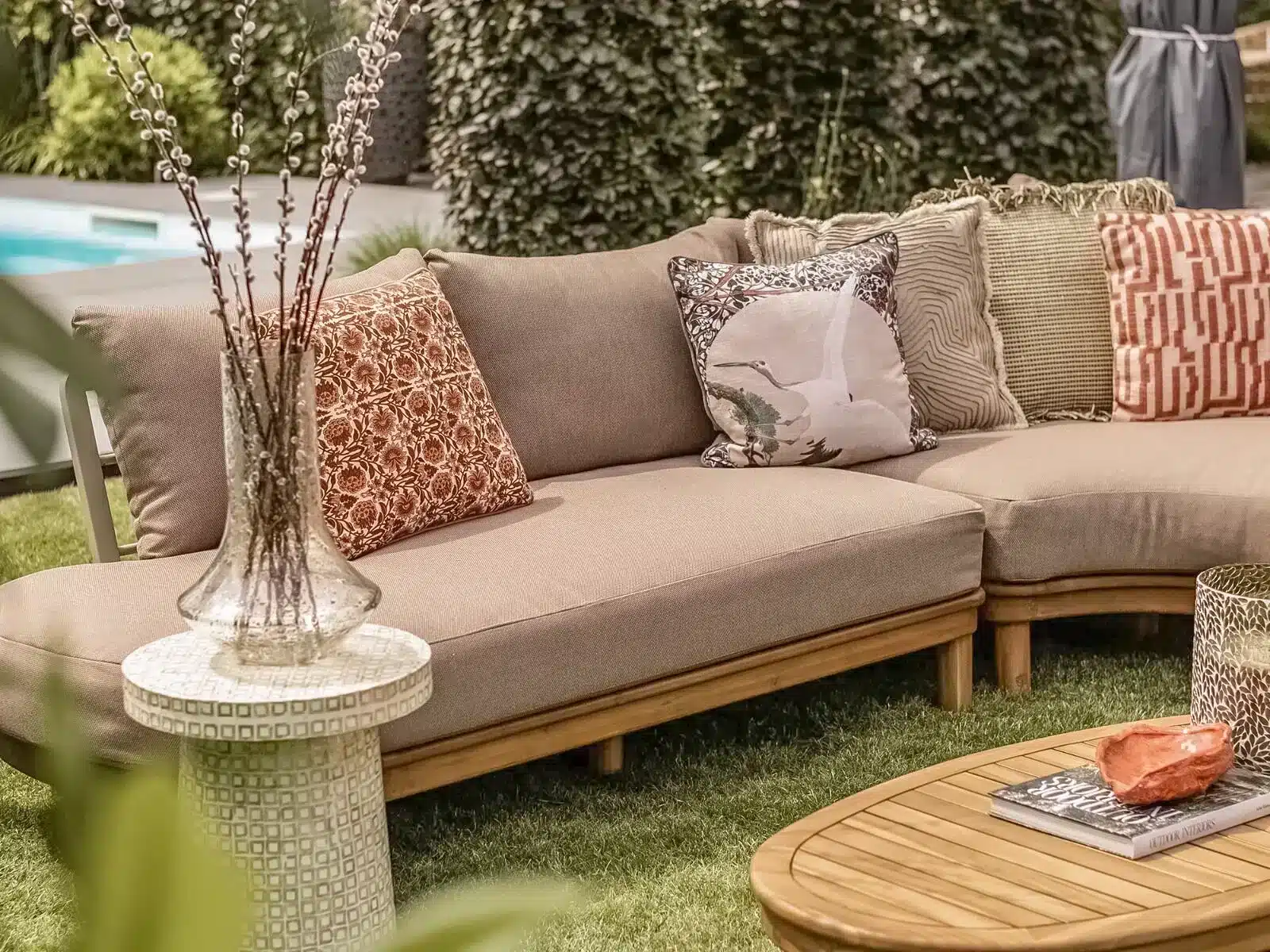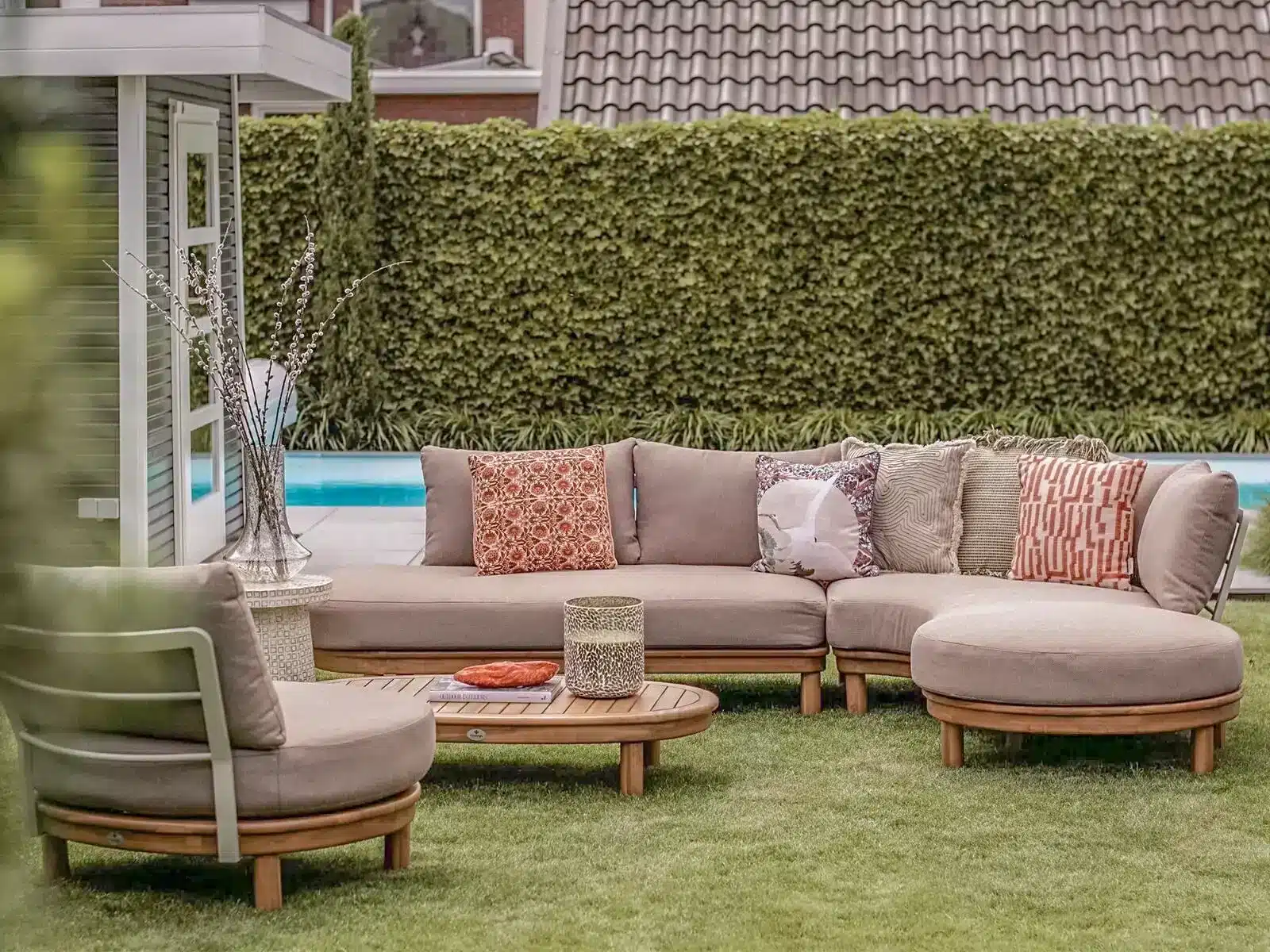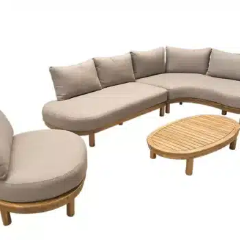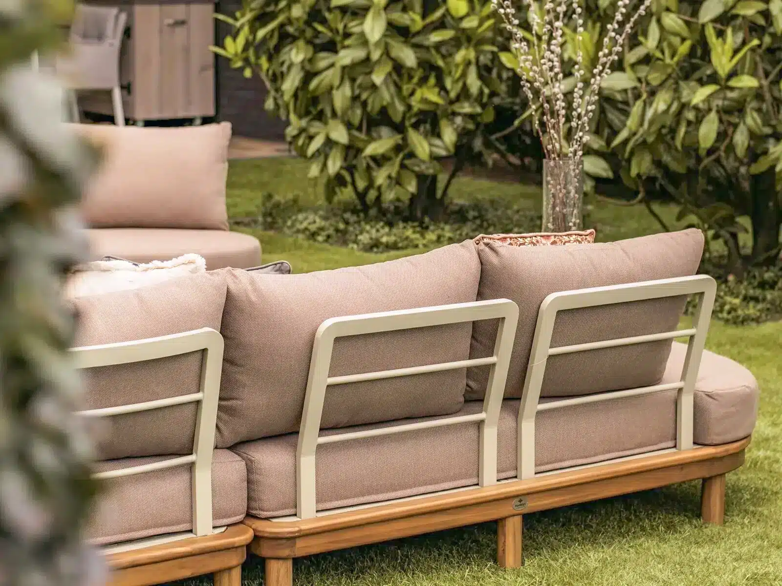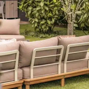 סט ישיבה מודולרי המיועד לחללי חוץ, בעיצוב רך ומזמין שמשלב בין פונקציונליות גבוהה לאסתטיקה טבעית ונקייה.