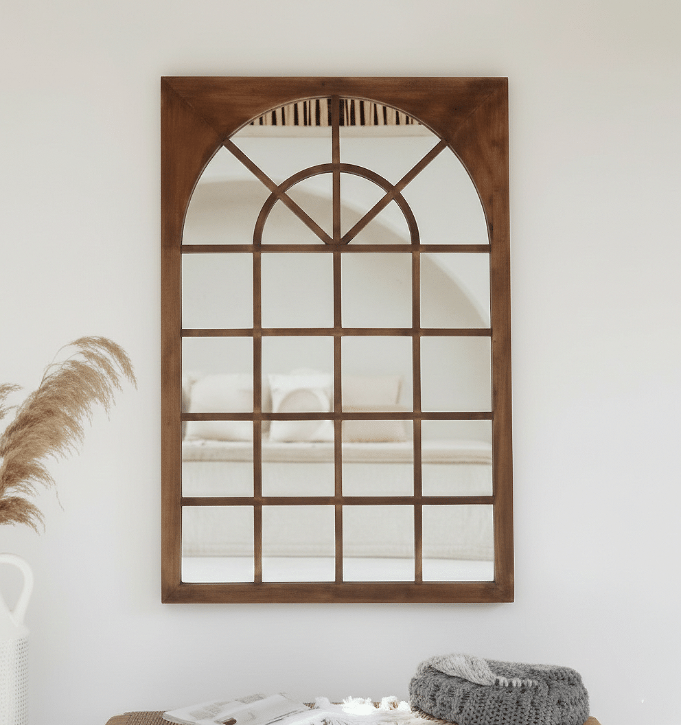 הוסיפו נגיעה של קסם כפרי ותחושת מרחב לבית עם מראת הקיר המעוצבת שלנו. המראה מעוצבת בסגנון חלון קשתי קלאסי, המעניק לכל קיר מראה של חלון אמיתי ומוסיף המון אופי וסטייל.