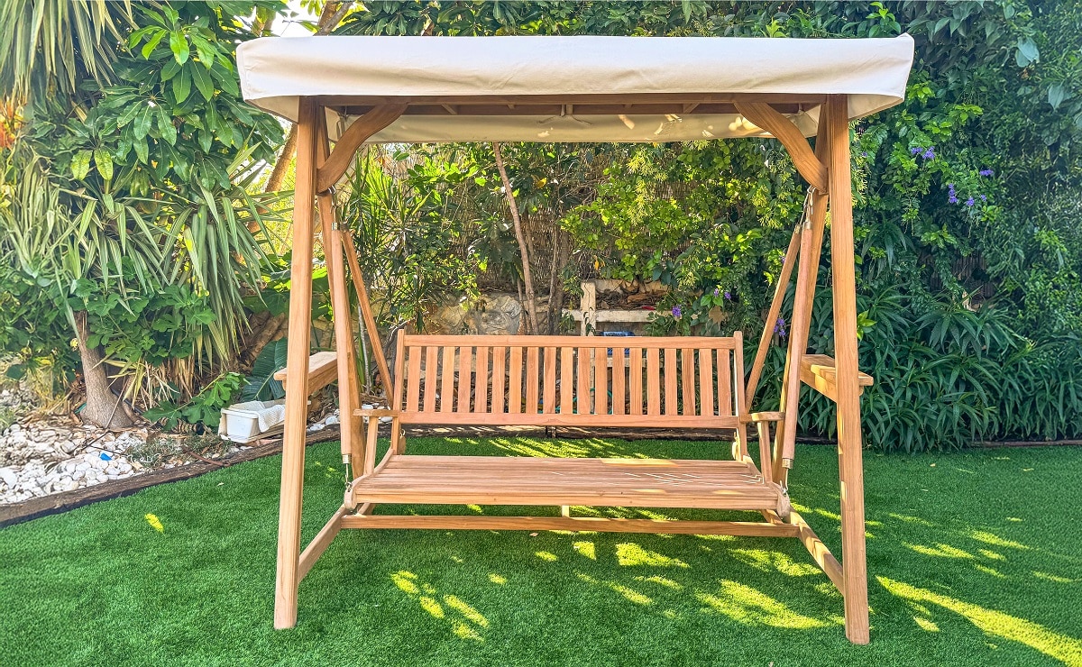 נדנדה מעץ טיק תוצרת אינדונזיה.