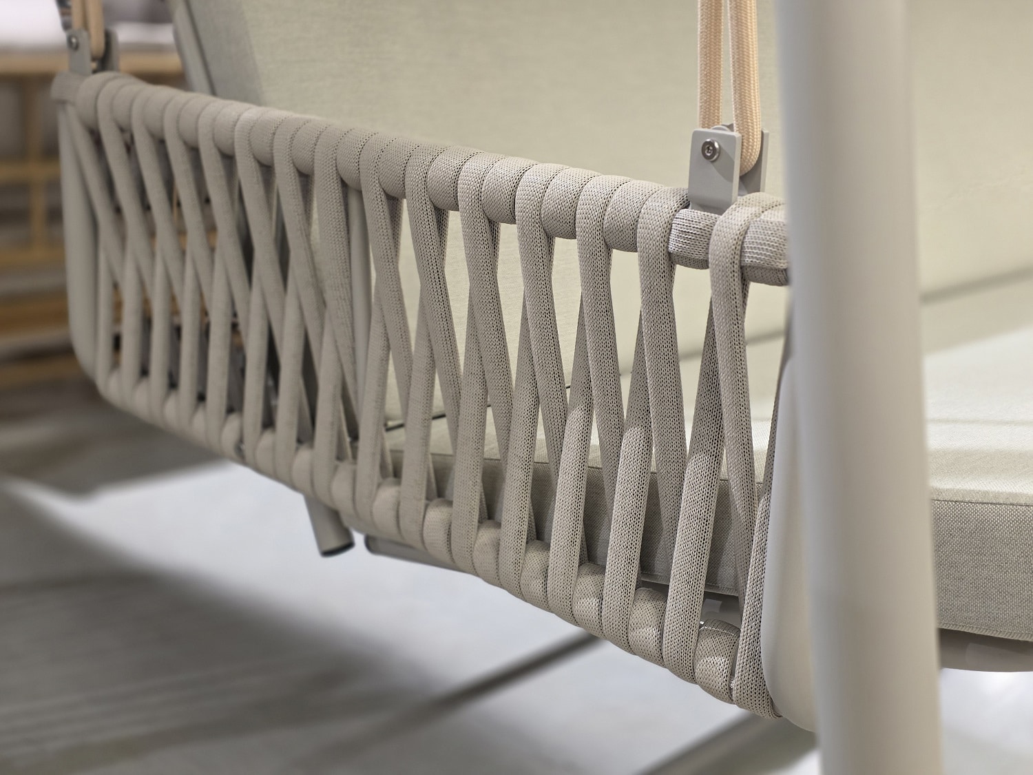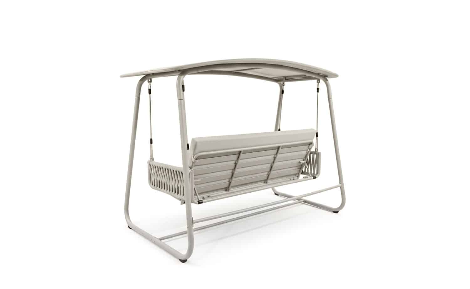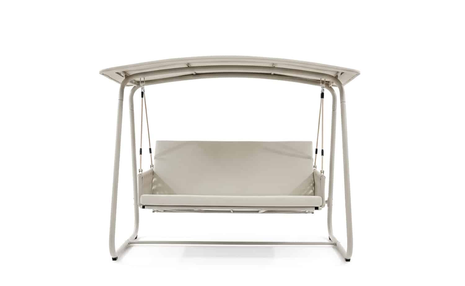 נדנדה זוגית מרשימה עם אפשרות פתיחה למיטה, פתרון מושלם לרגעי מנוחה, אירוח או פינת רביצה מפנקת בחוץ.