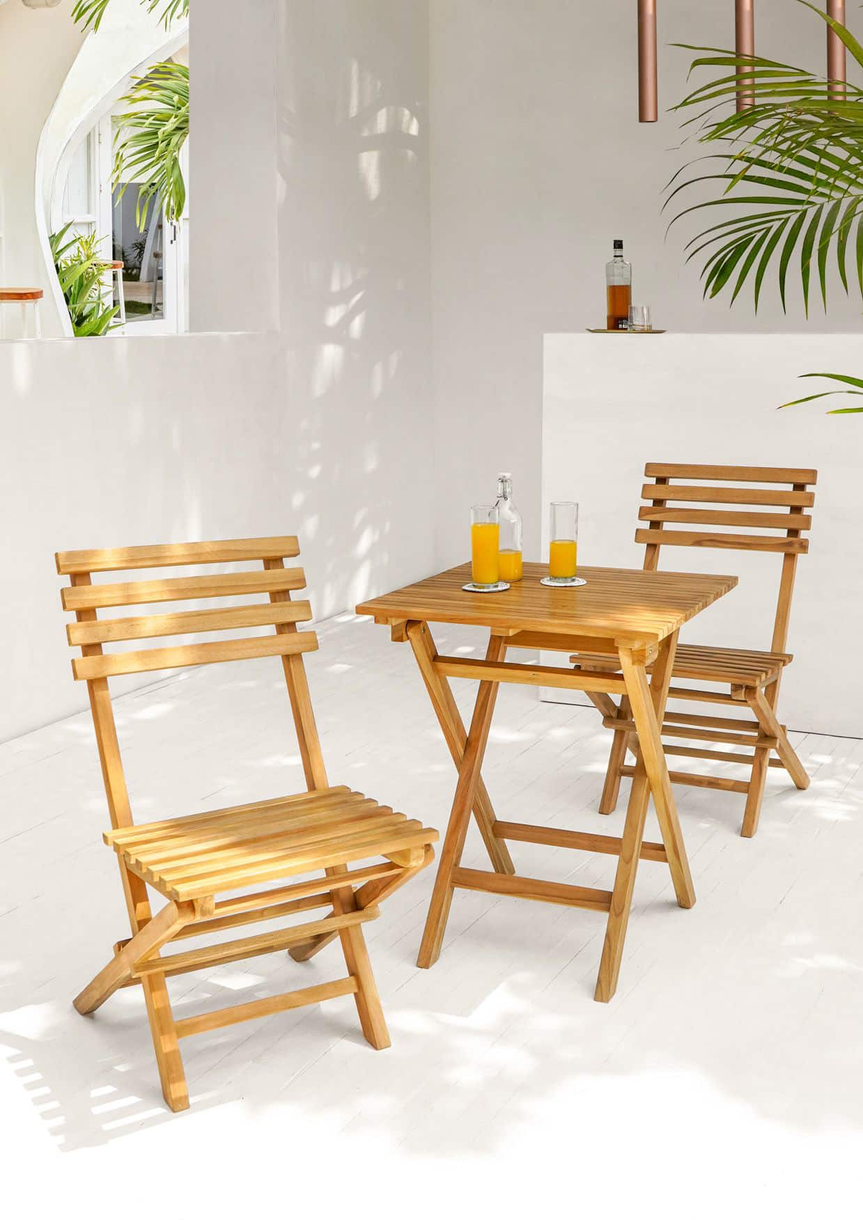 סט ביסטרו מתקפל מעץ טיק.