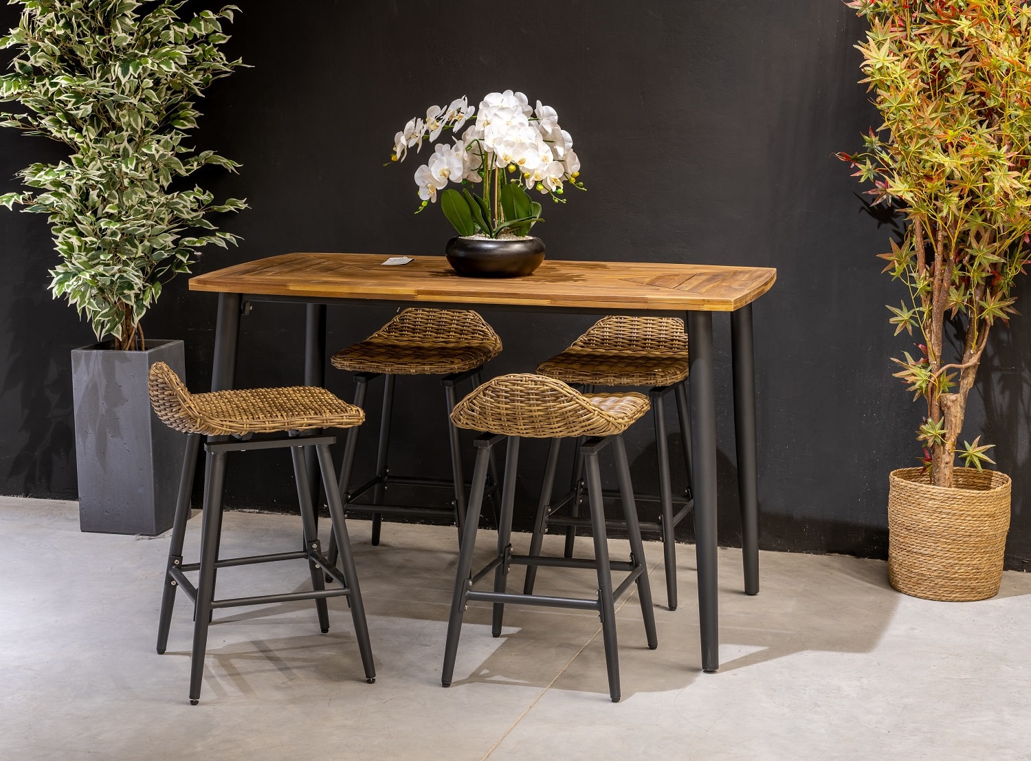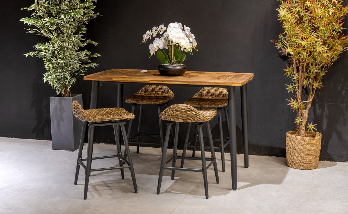 הסט כולל 4 כיסאות בר ושולחן.