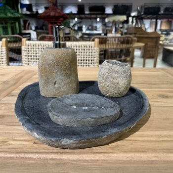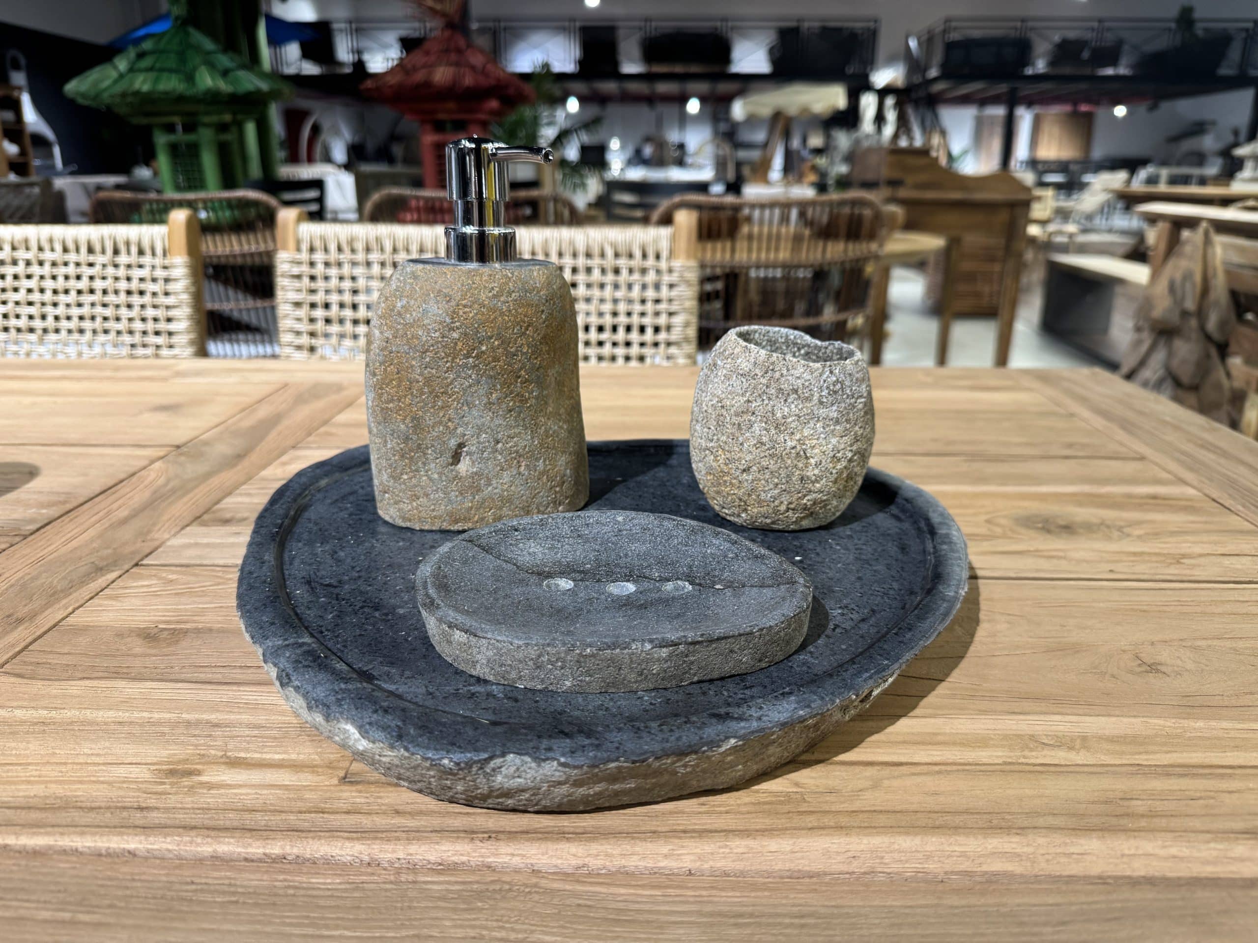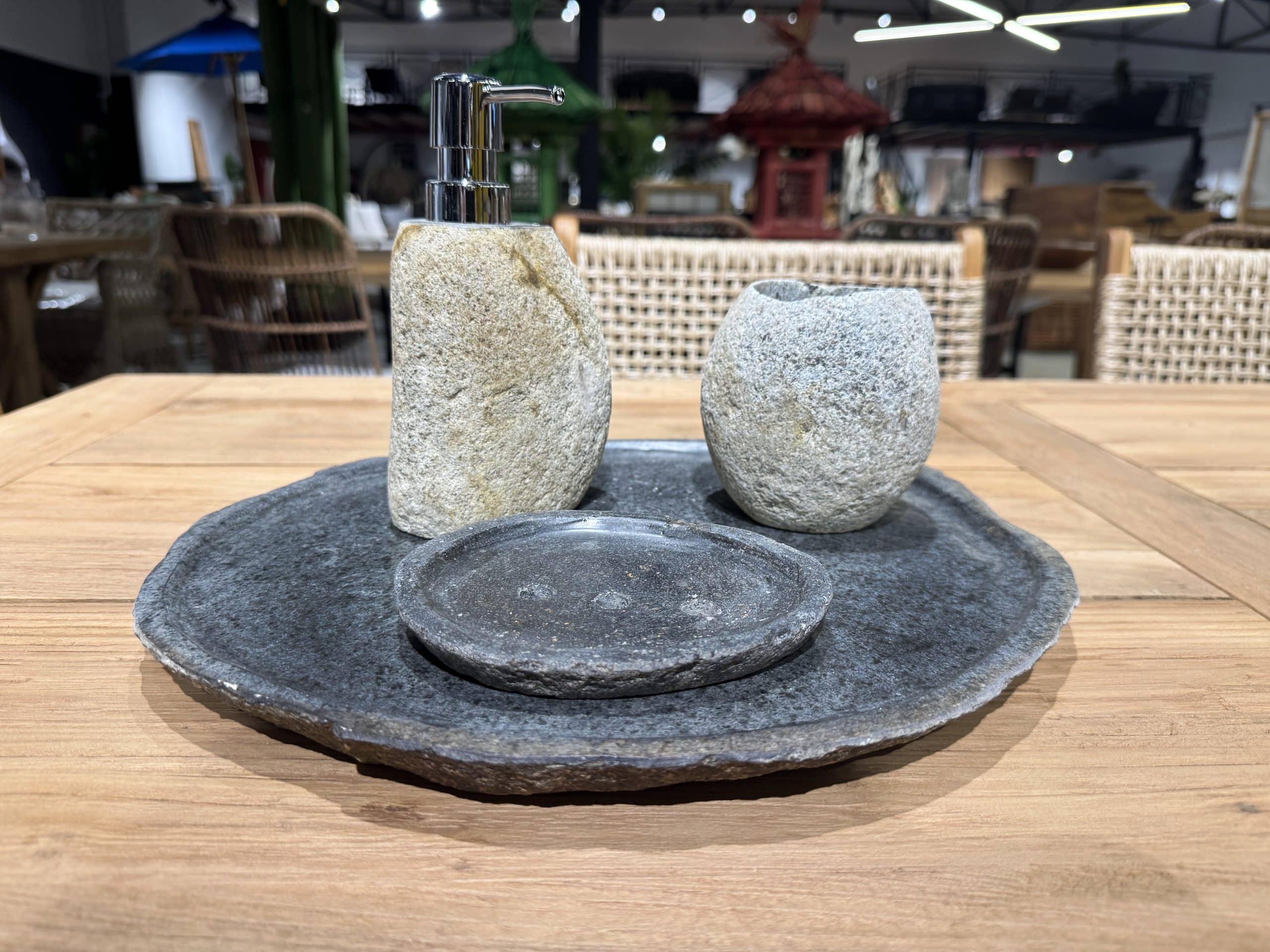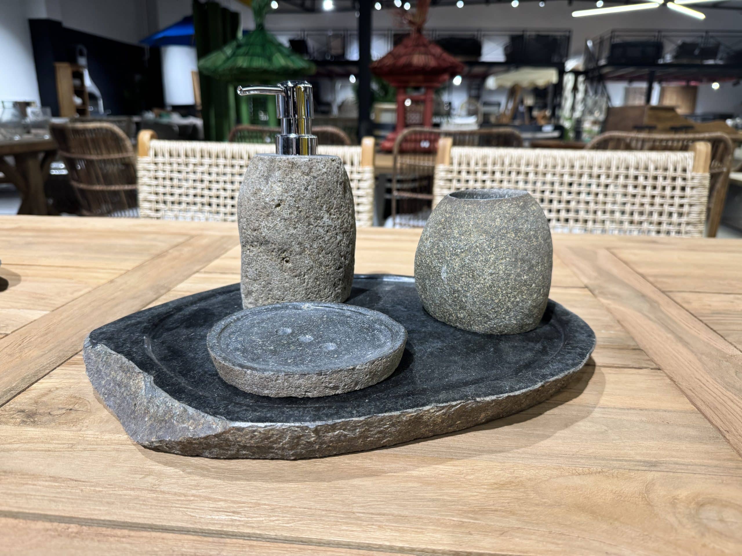 הסט עשוי תערובת אבן בזלת וחלוקי נחל.