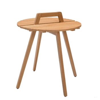 השולחן בנוי מעץ אקליפטוס מלא, עמיד וקל לתחזוקה.