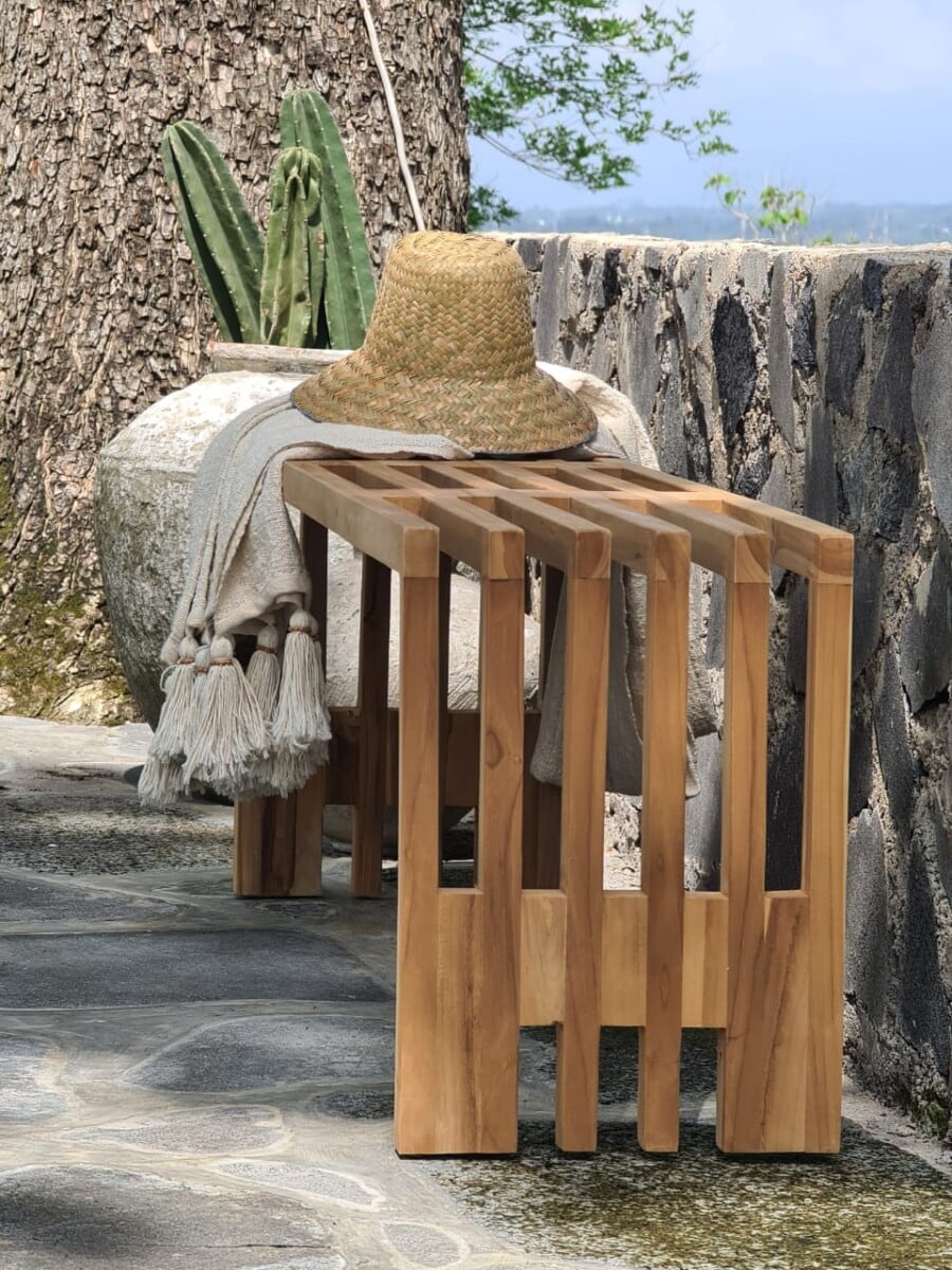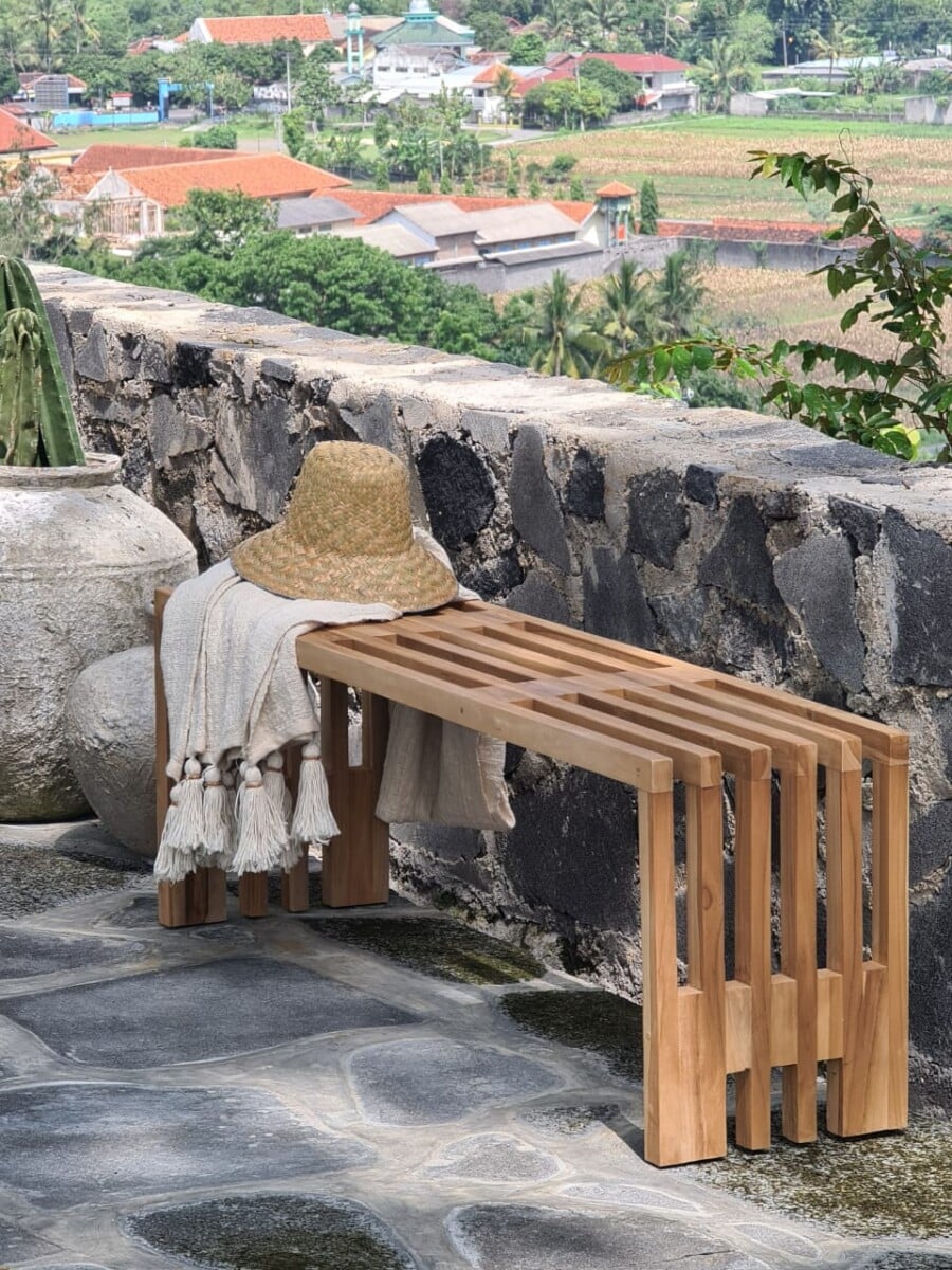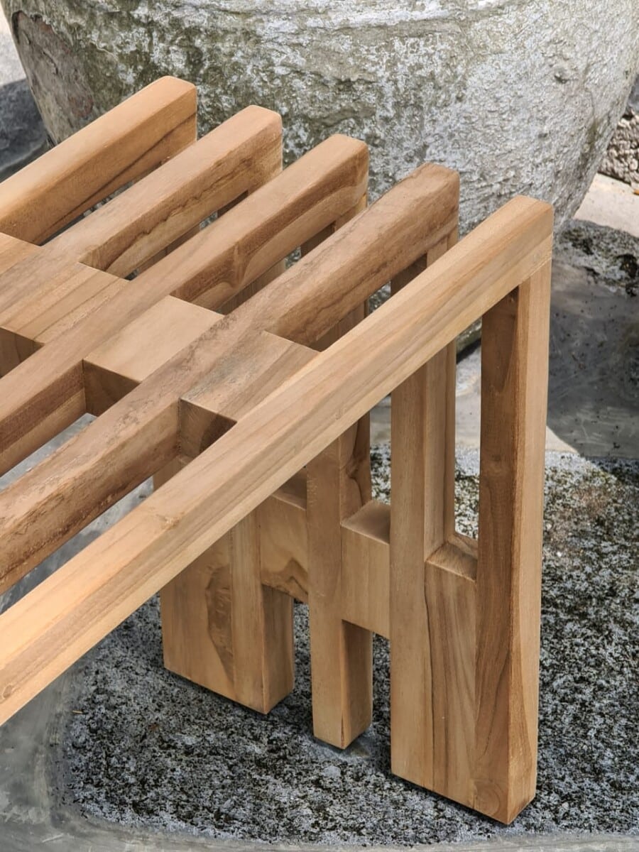 ספסל טיק בעיצוב מיוחד.