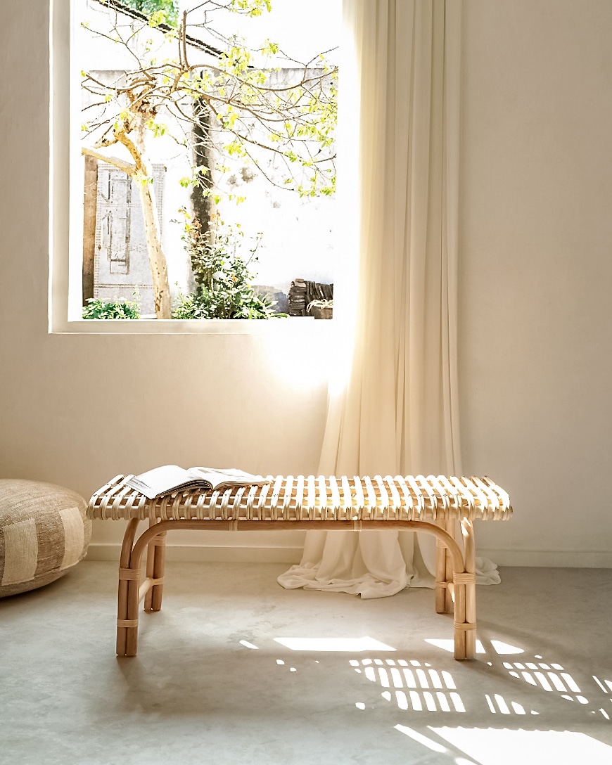ספסל מעוצב מראטן טבעי תוצרת אינדונזיה.