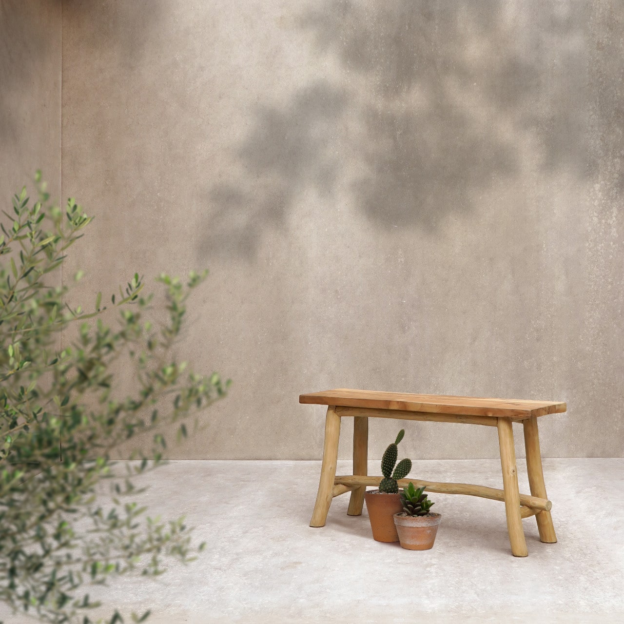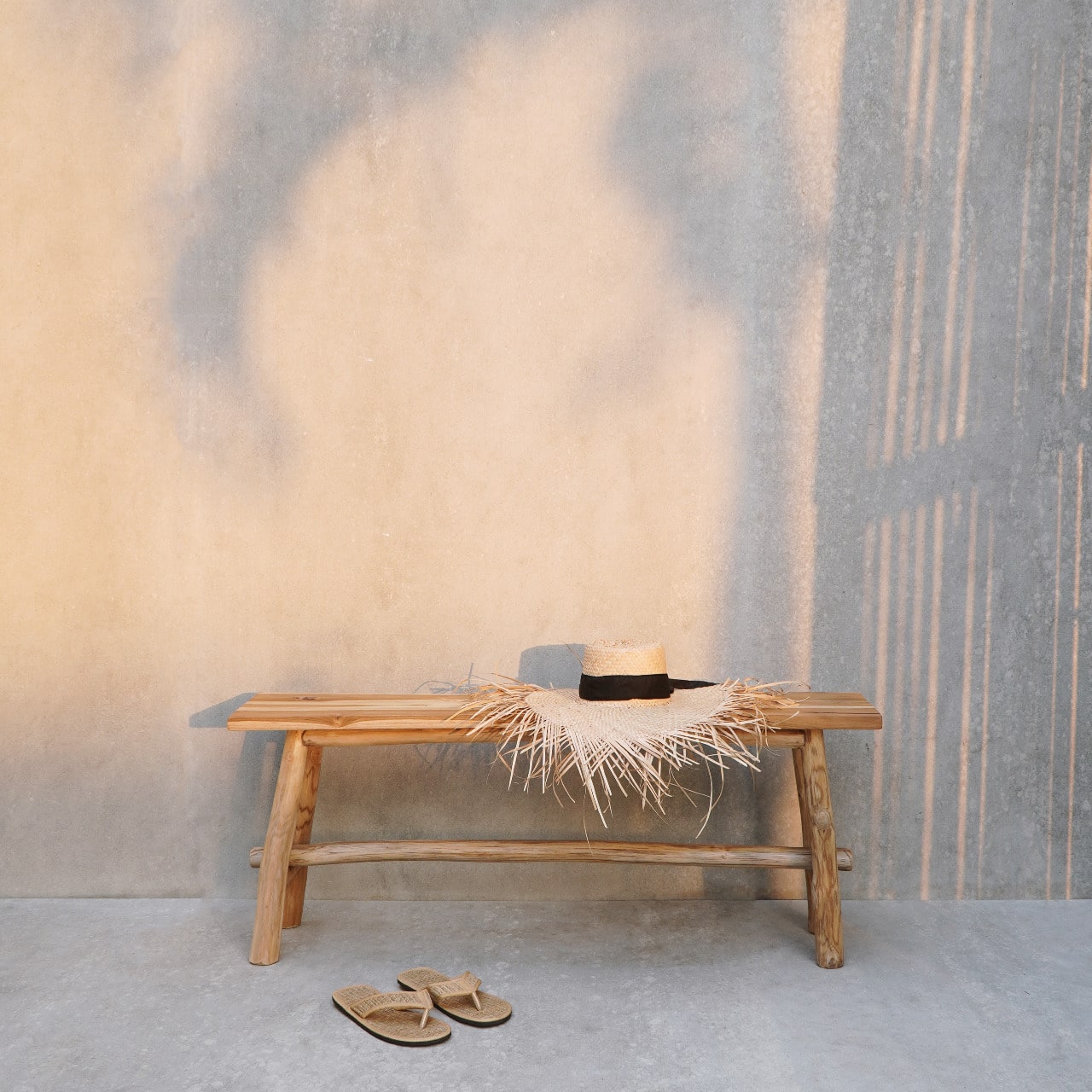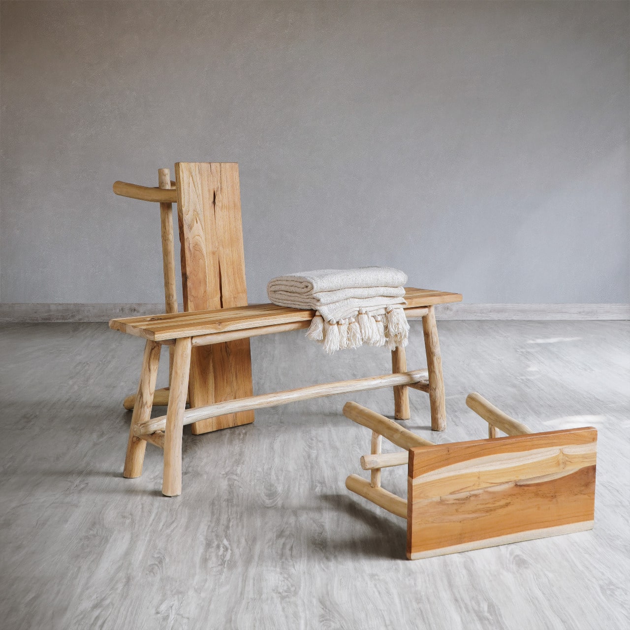 ספסל מעוצב הבנוי מענפי טיק.