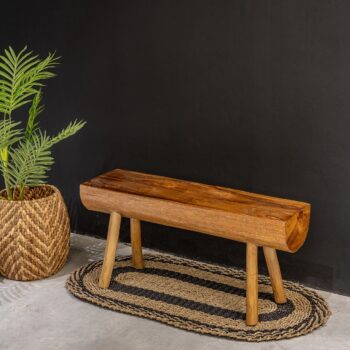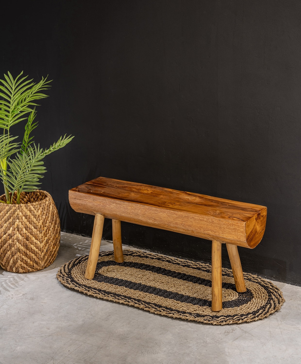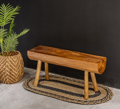 הספסל בנוי מגזע עת טיק מלא בשילוב ענפי טיק.