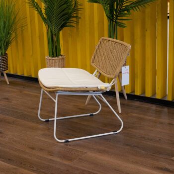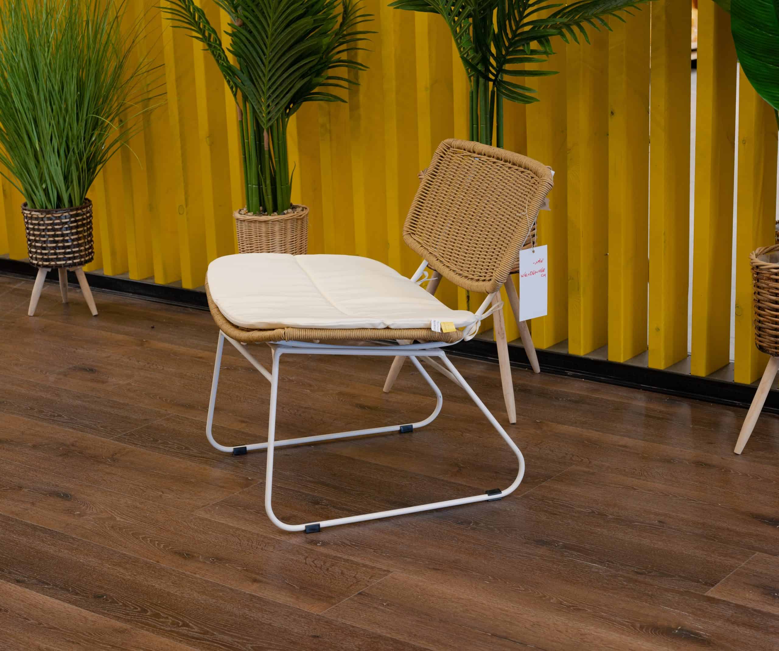 שלדה לבנה, ראטן דמוי טבעי וריפוד לבן קרם.
