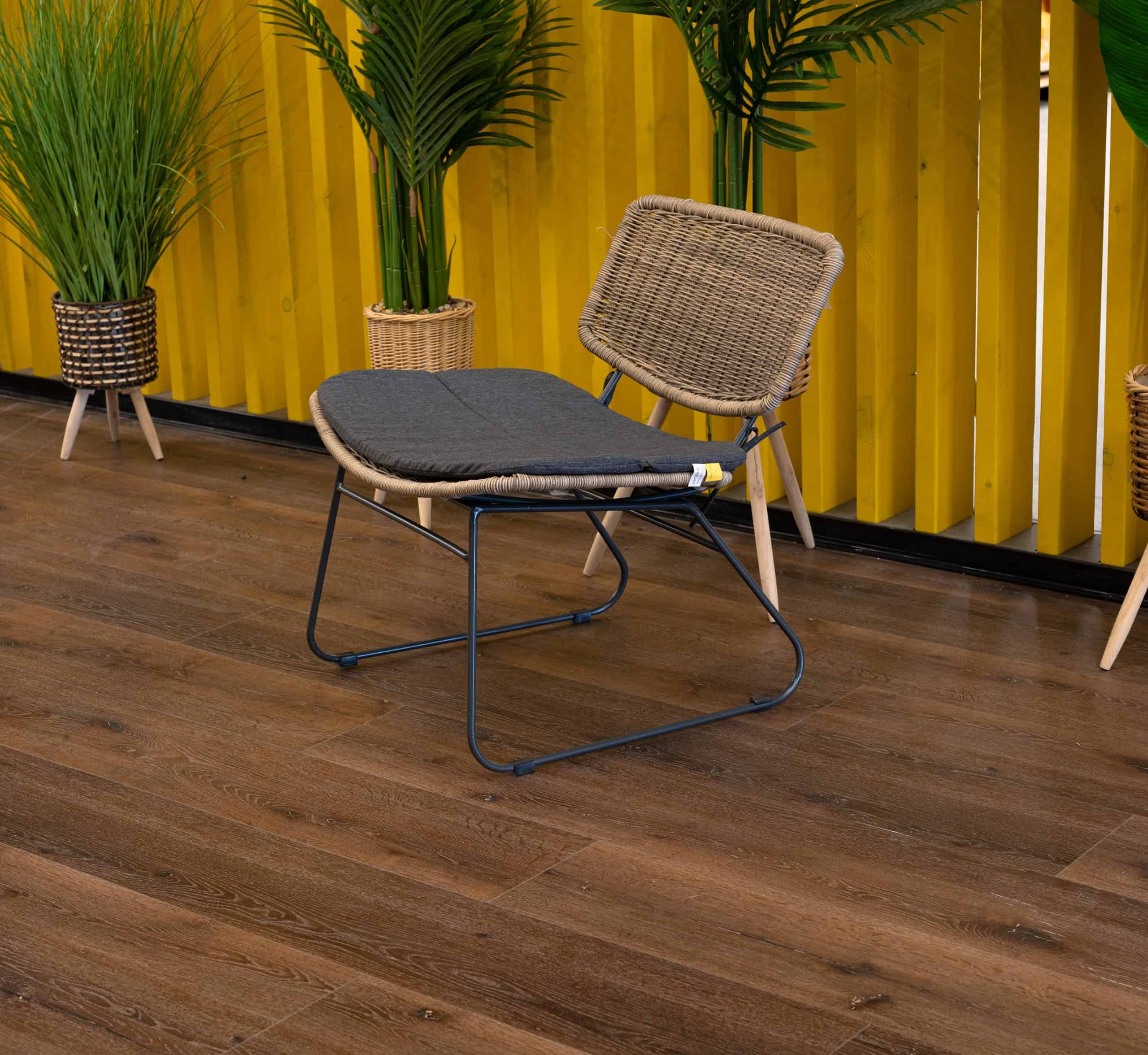 שלדה אפור, ראטן דמוי טבעי וריפוד אפור כהה.