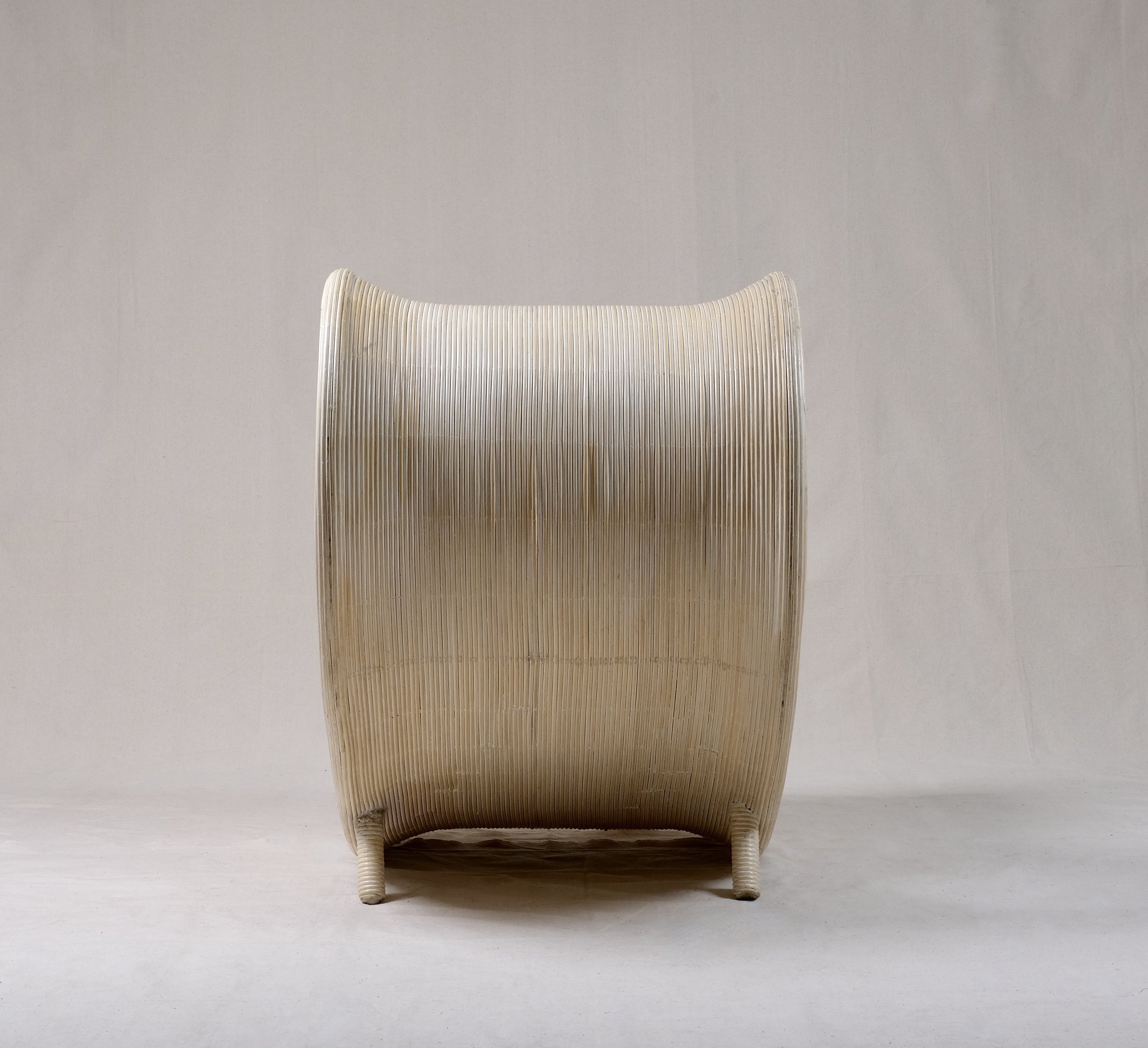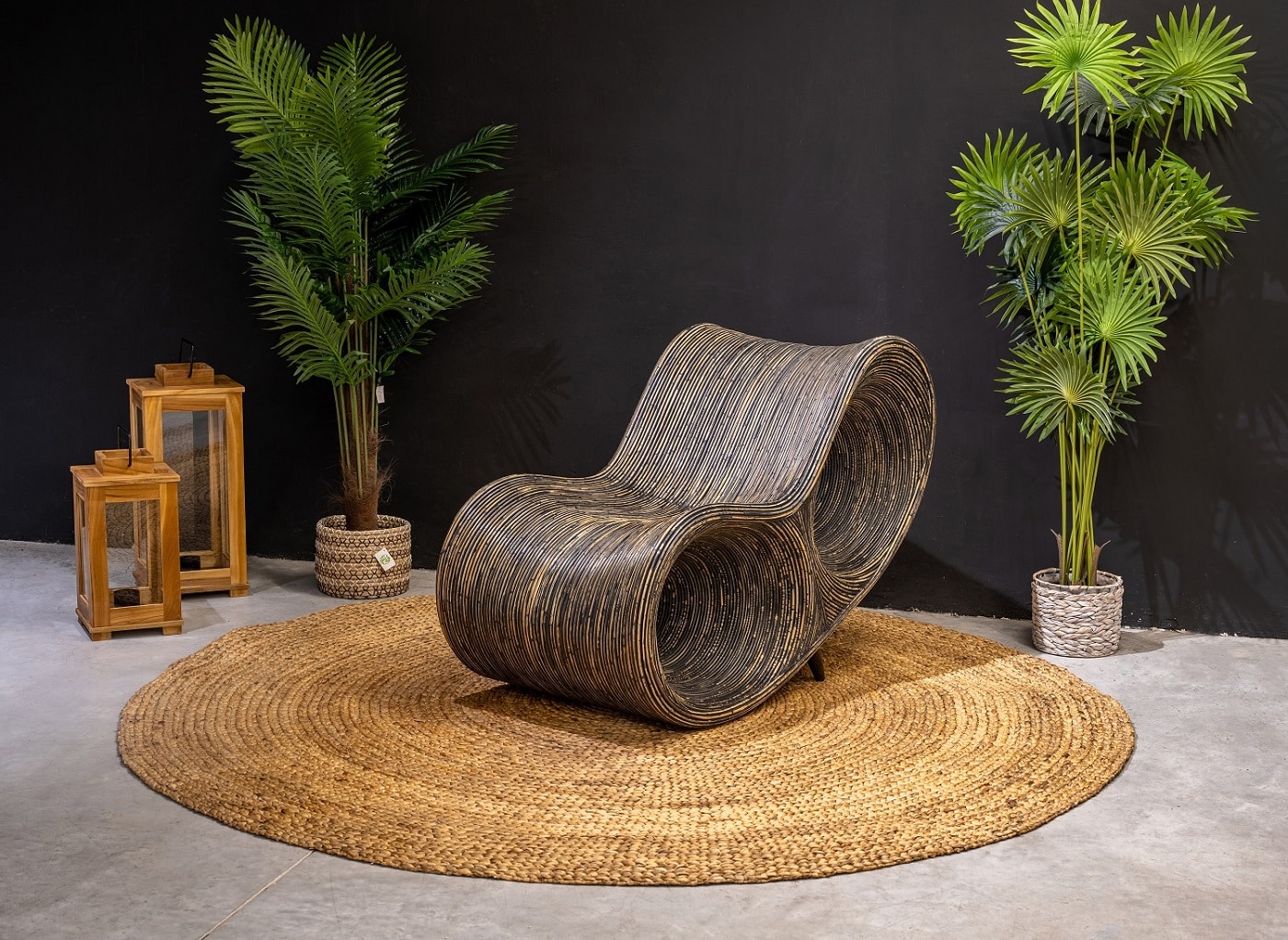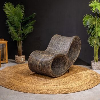 ספת יחיד מעוצבת הבנויה מראטן טבעי בגימור שחור ווש תוצרת אינדונזיה.