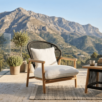 הכורסא בנויה מעץ טיק בשילוב חבלים סינתטיים איכותיים.
