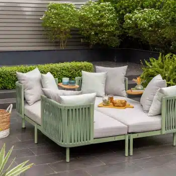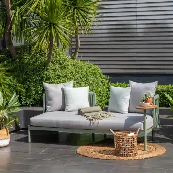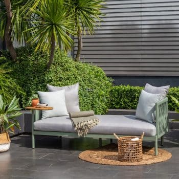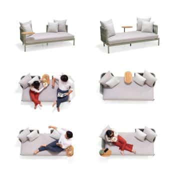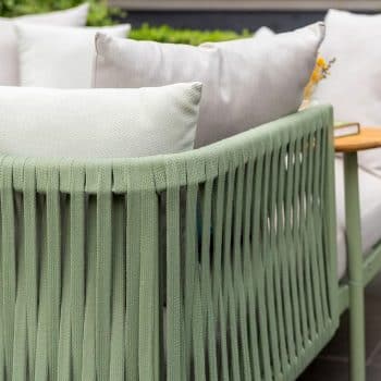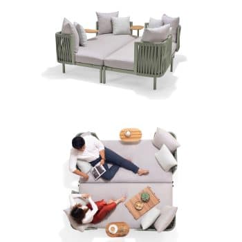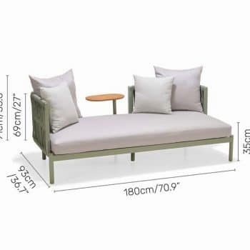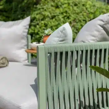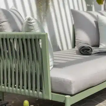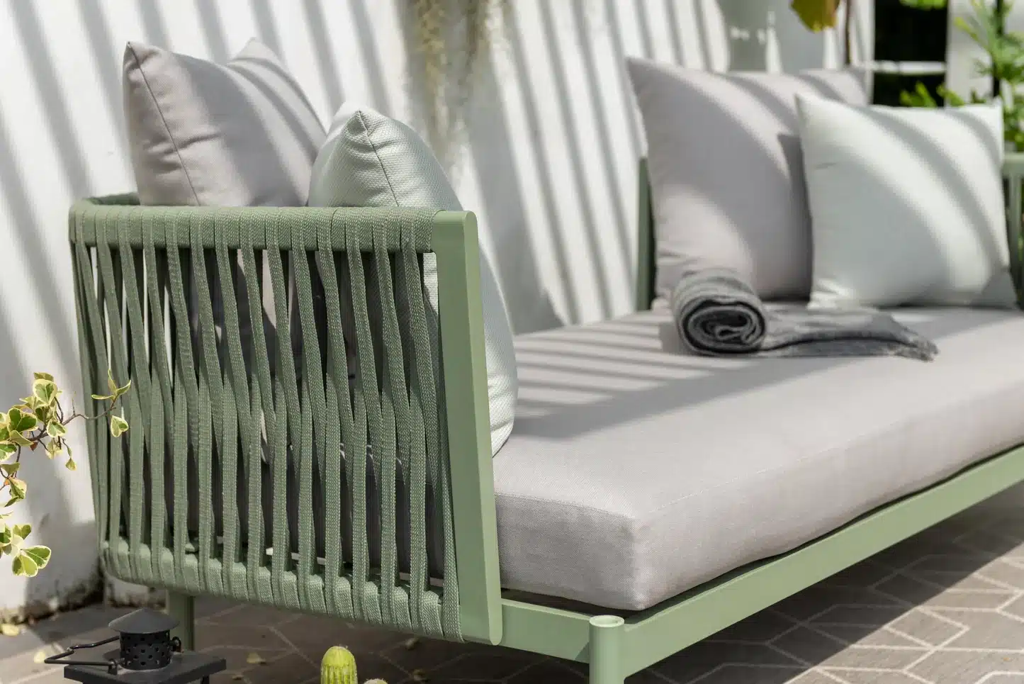 הספה בנויה משלדת אלומיניום “אל חלד” בשילוב חבלי אולפין עמידים.