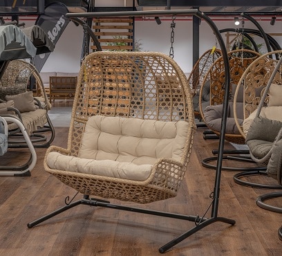 מעמד שחור, ראטן חום אפור, ריפוד קרם.