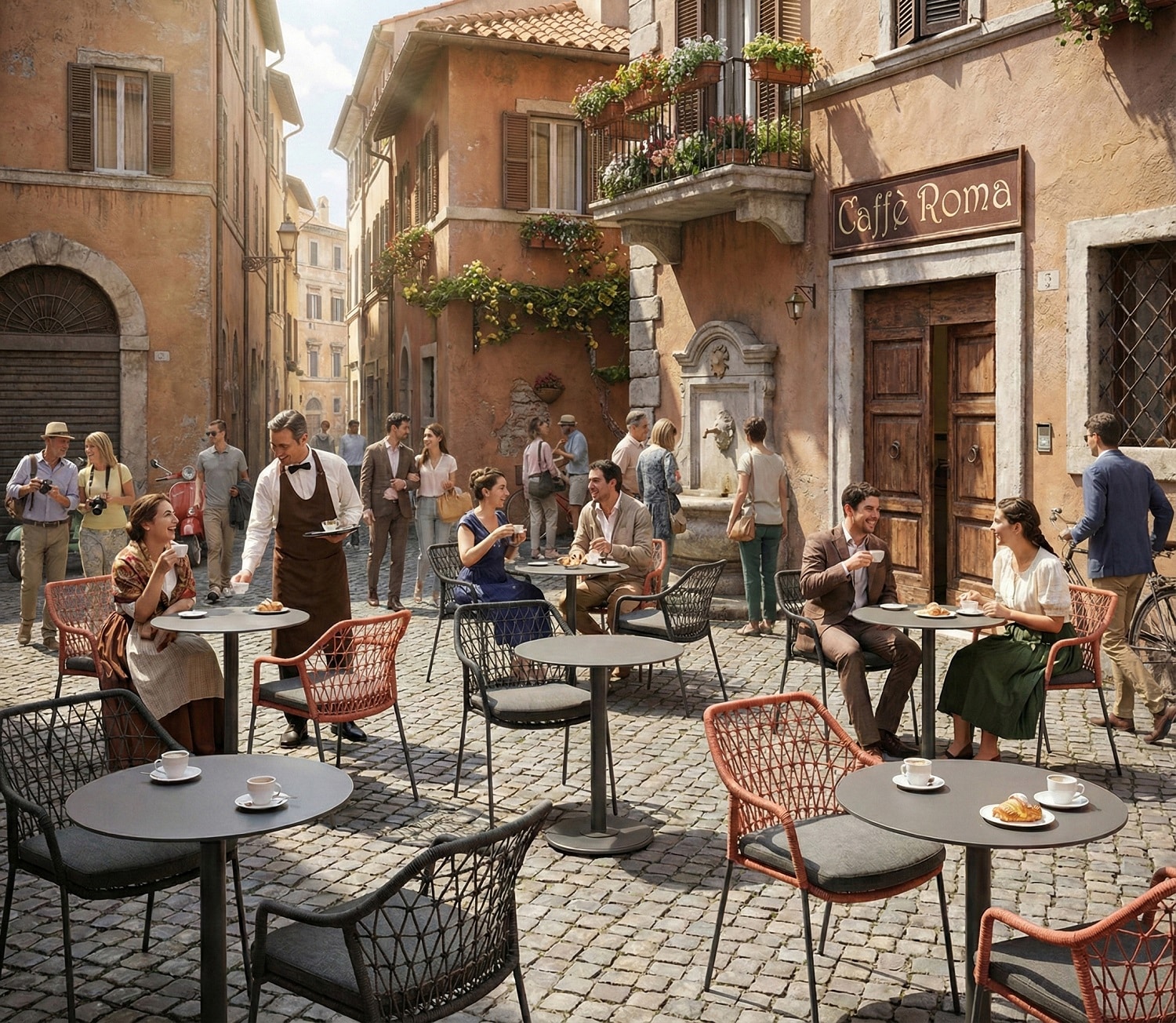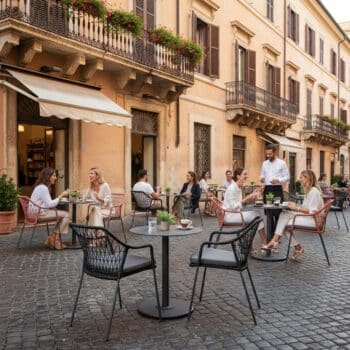 שולחן ביסטרו מעוצב הבנוי מאלומיניום “אל חלד”.
