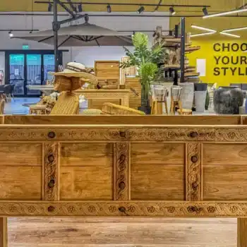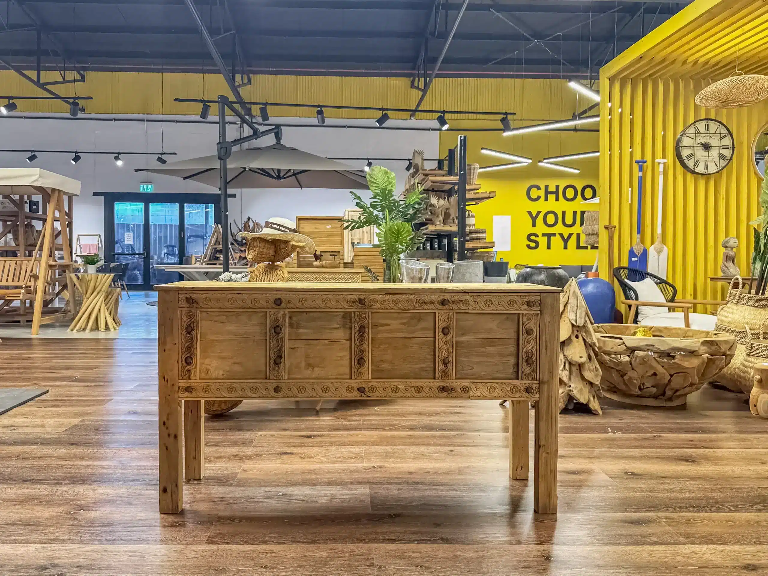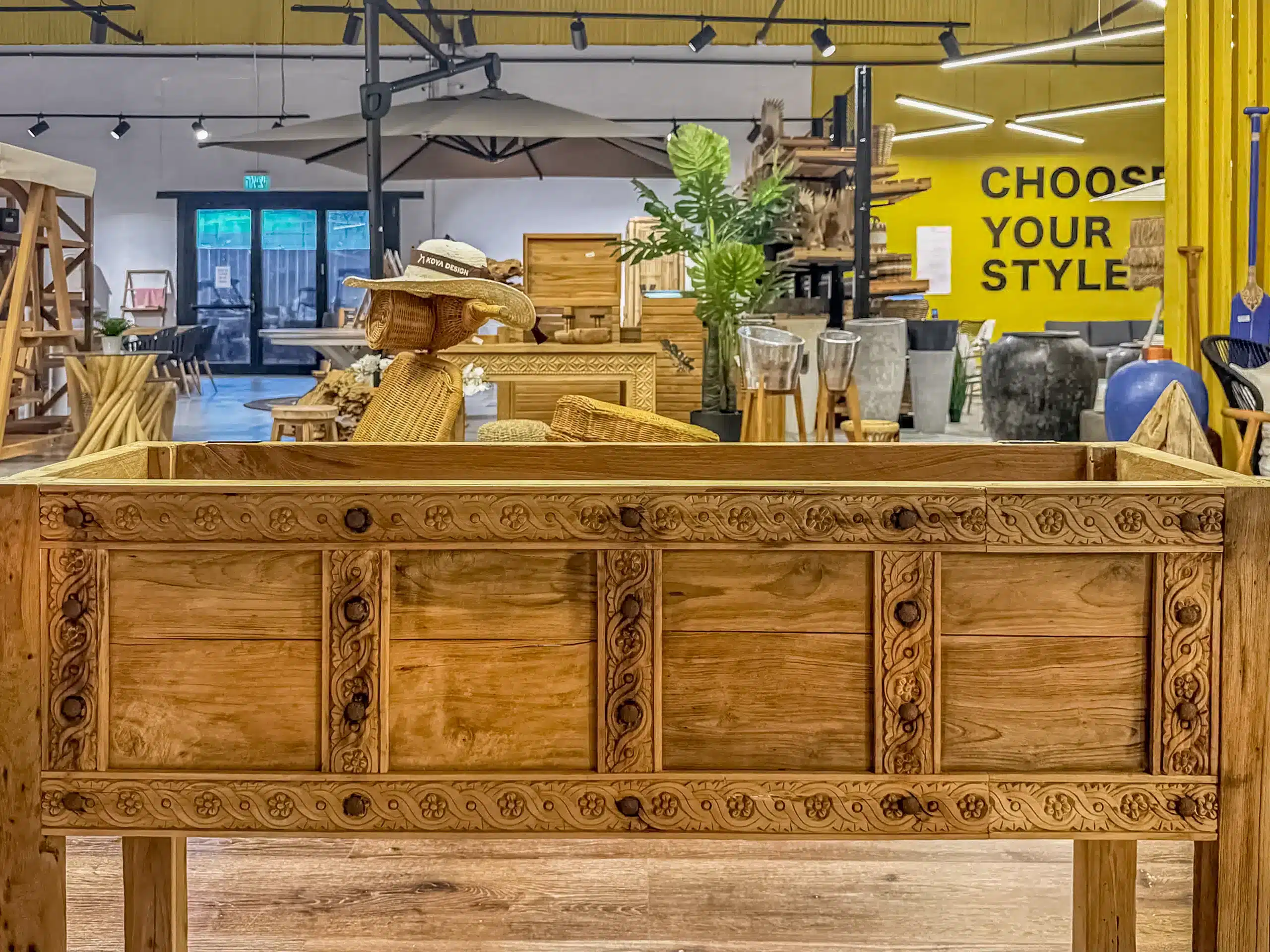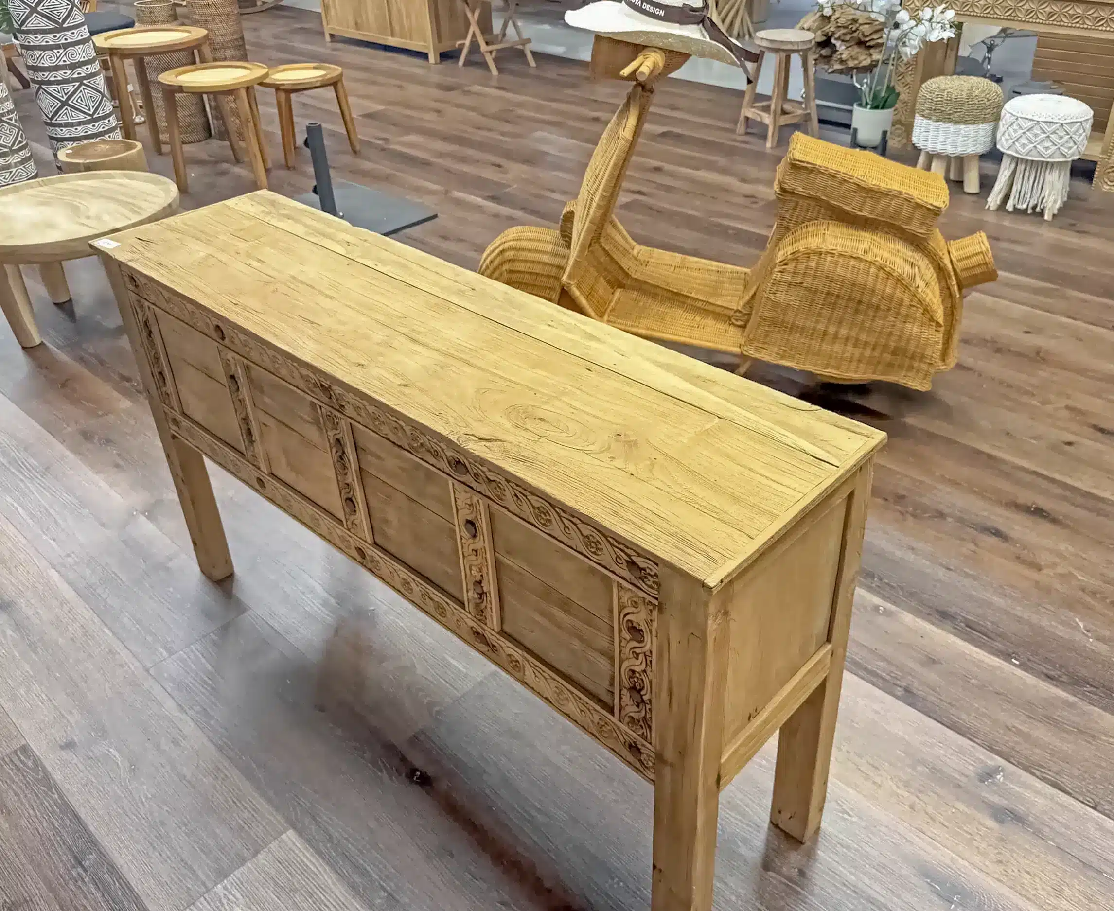 השידה עשויה מעץ טיק איכותי במיוחד עם גימור מחוספס מדהים.
