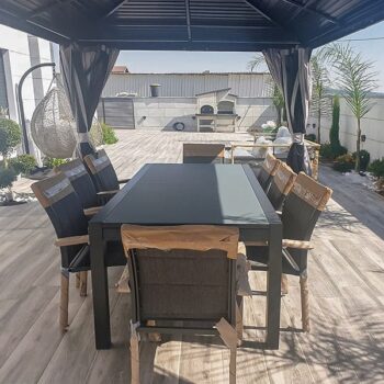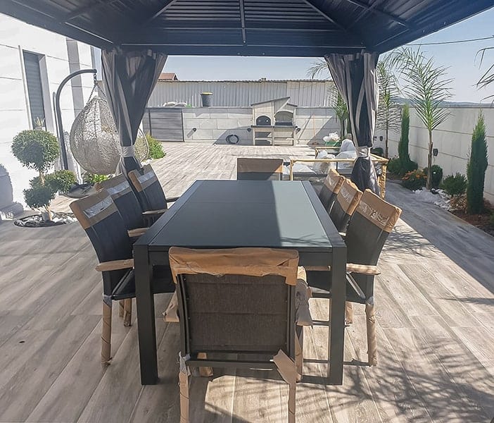 שולחן אוכל מפואר לגינה הבנוי משלדת אלומיניום “אל חלד” מאסיבית.