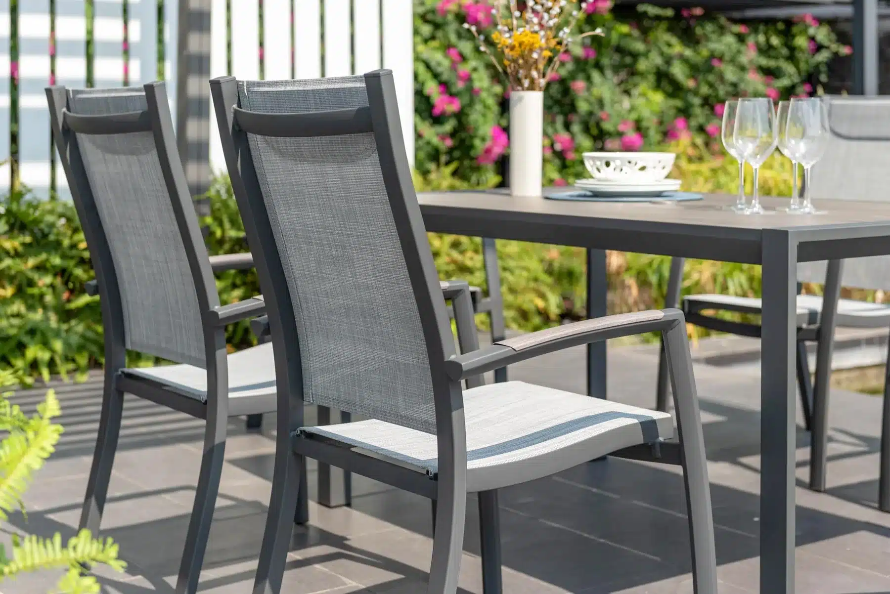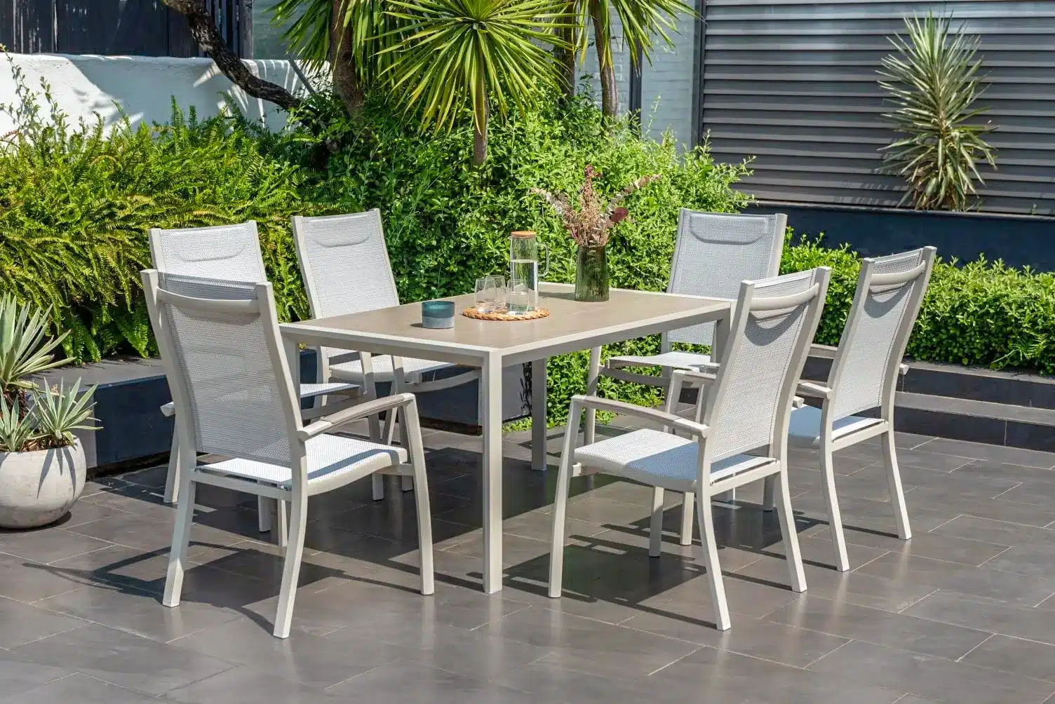 פינת אוכל לגינה מדגם אורבן 160 עם 6 כיסאות פנמה.