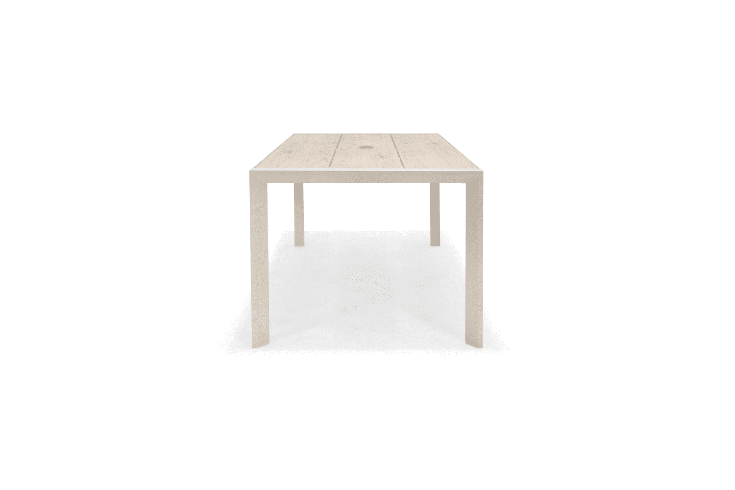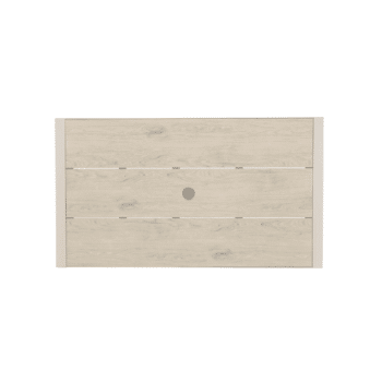העיצוב הנקי והעכשווי כולל רגליים מעוצבות, לוחות מודפסים בגימור עץ וחור לשמשייה, לשמירה על הצל גם בימים חמים.