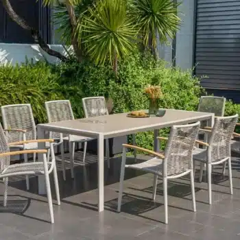 פינת אוכל לגינה מדגם אורבן 207 עם 6 כיסאות טופז חבלים.
