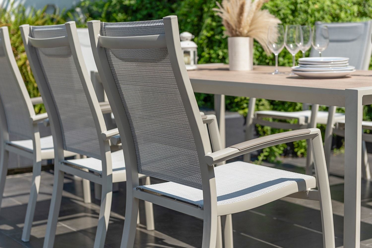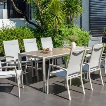 פינת אוכל לגינה מדגם אורבן 207 עם 6 כיסאות פנמה.