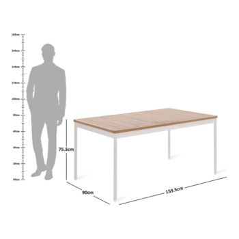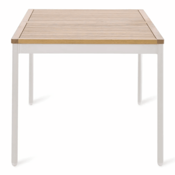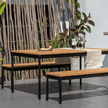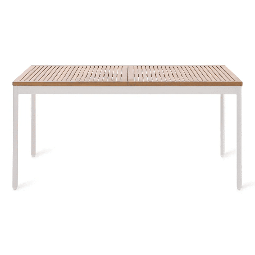 השולחן בנוי משלדת אלומיניום “אל חלד” בשילוב לוחות עץ אקליפטוס FSC.