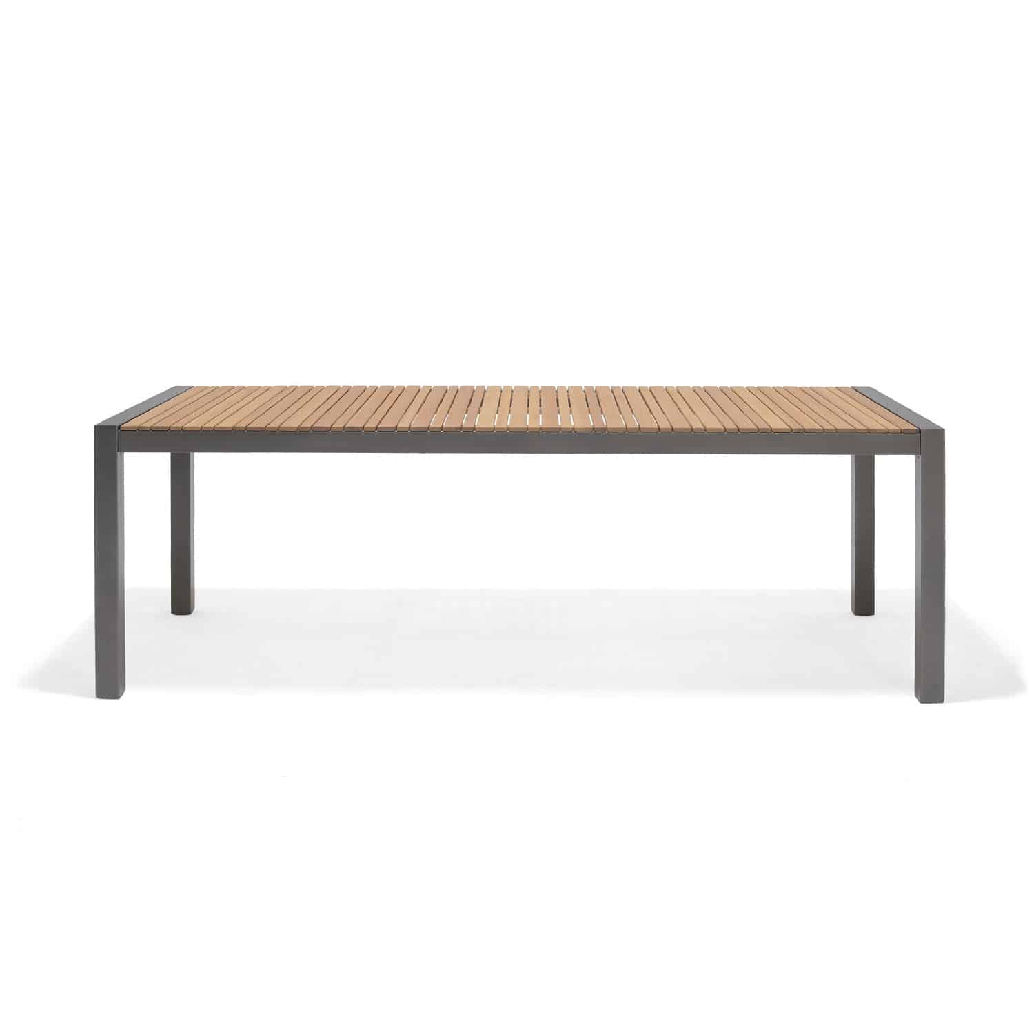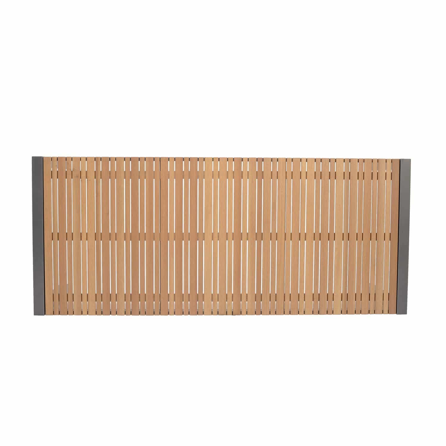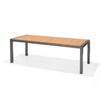 השולחן עשוי שלדת אלומיניום “אל חלד” בשילוב לוחות עץ אקליפטוס FSC.