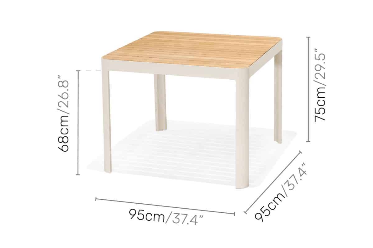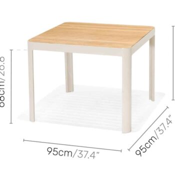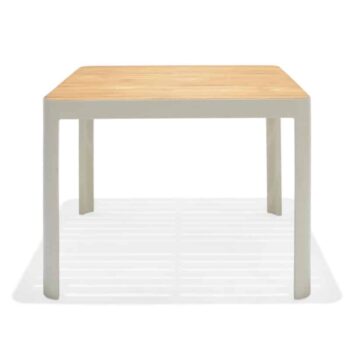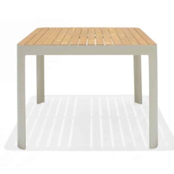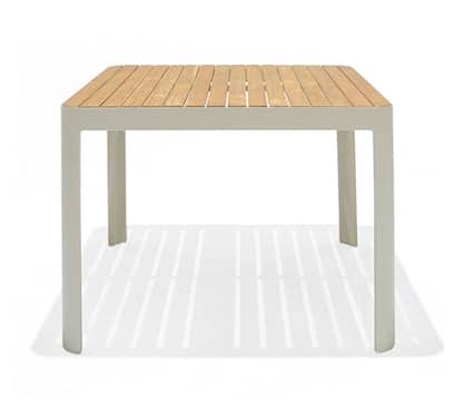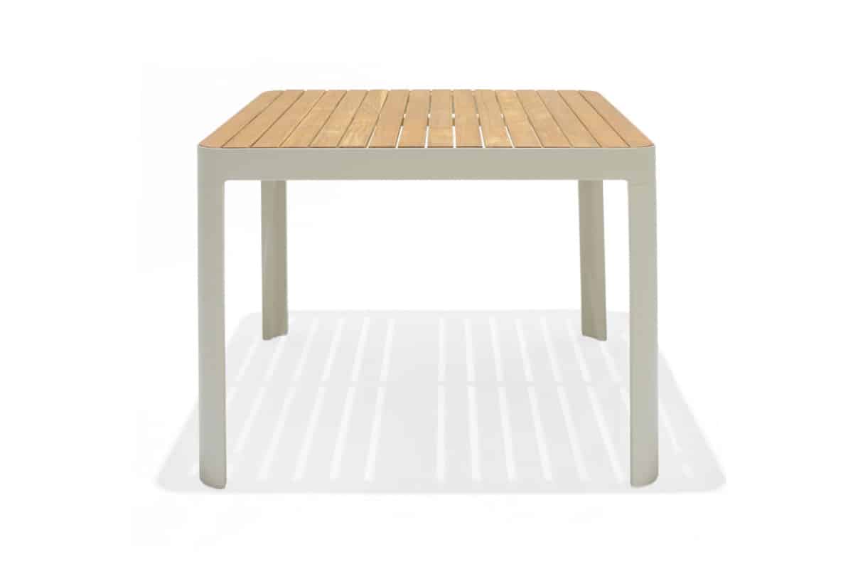 שולחן אלומיניום “אלד חלד” בשילוב לוחות עץ טיק אינדונזי.