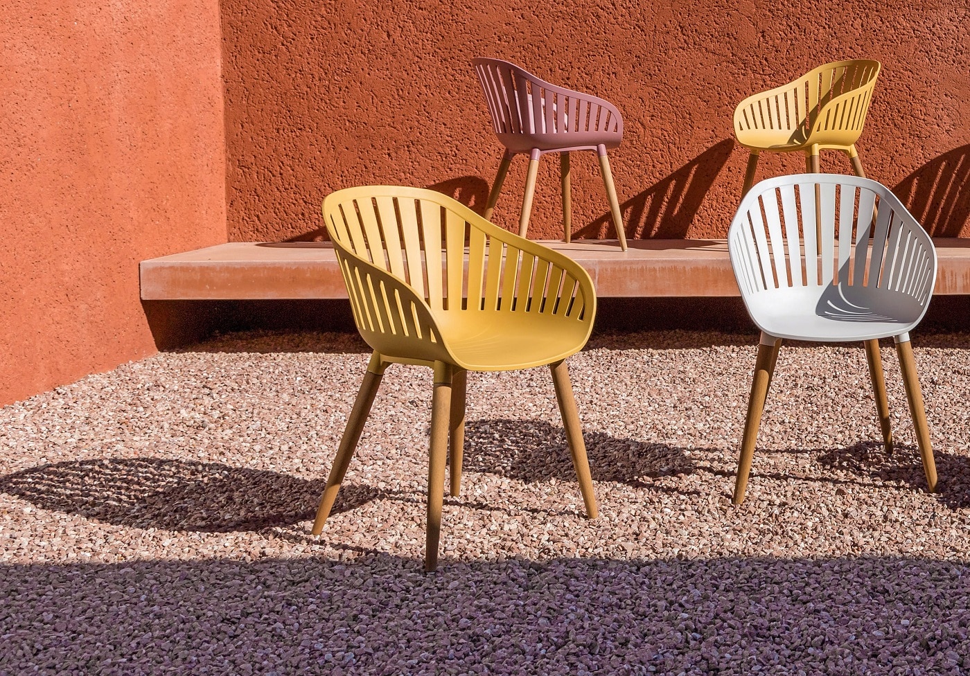 כיסא פלסטיק ABS חזק במיוחד בשילוב רגלי אקליפטוס FSC.