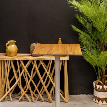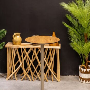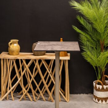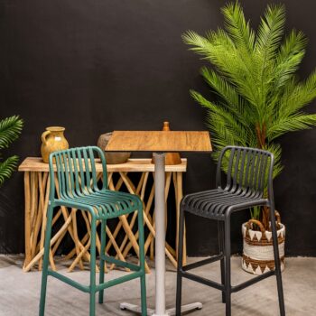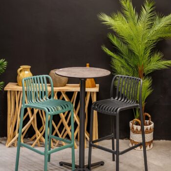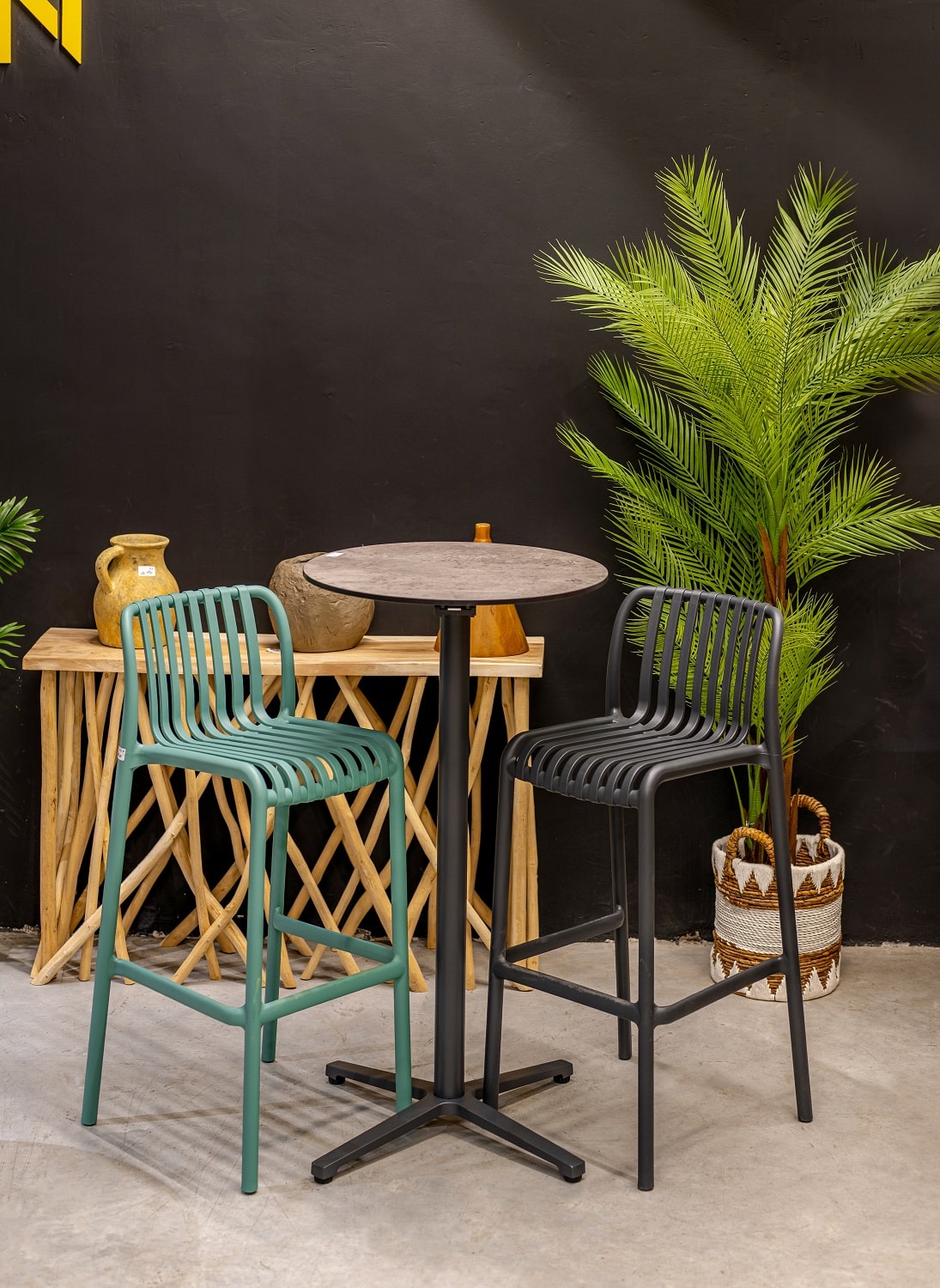 שולחן בר מודרני, מתאים לשימוש פנים וחוץ. עיצוב נקי עם חומרים איכותיים שמבטיחים עמידות גבוהה ותחזוקה קלה.