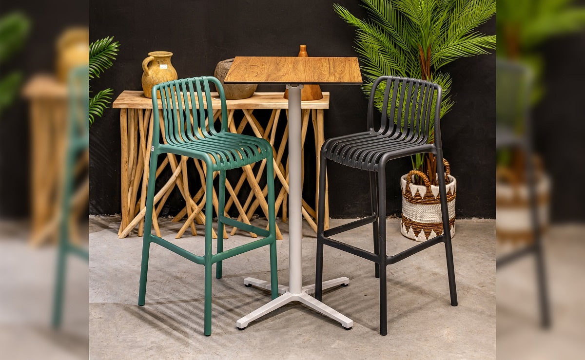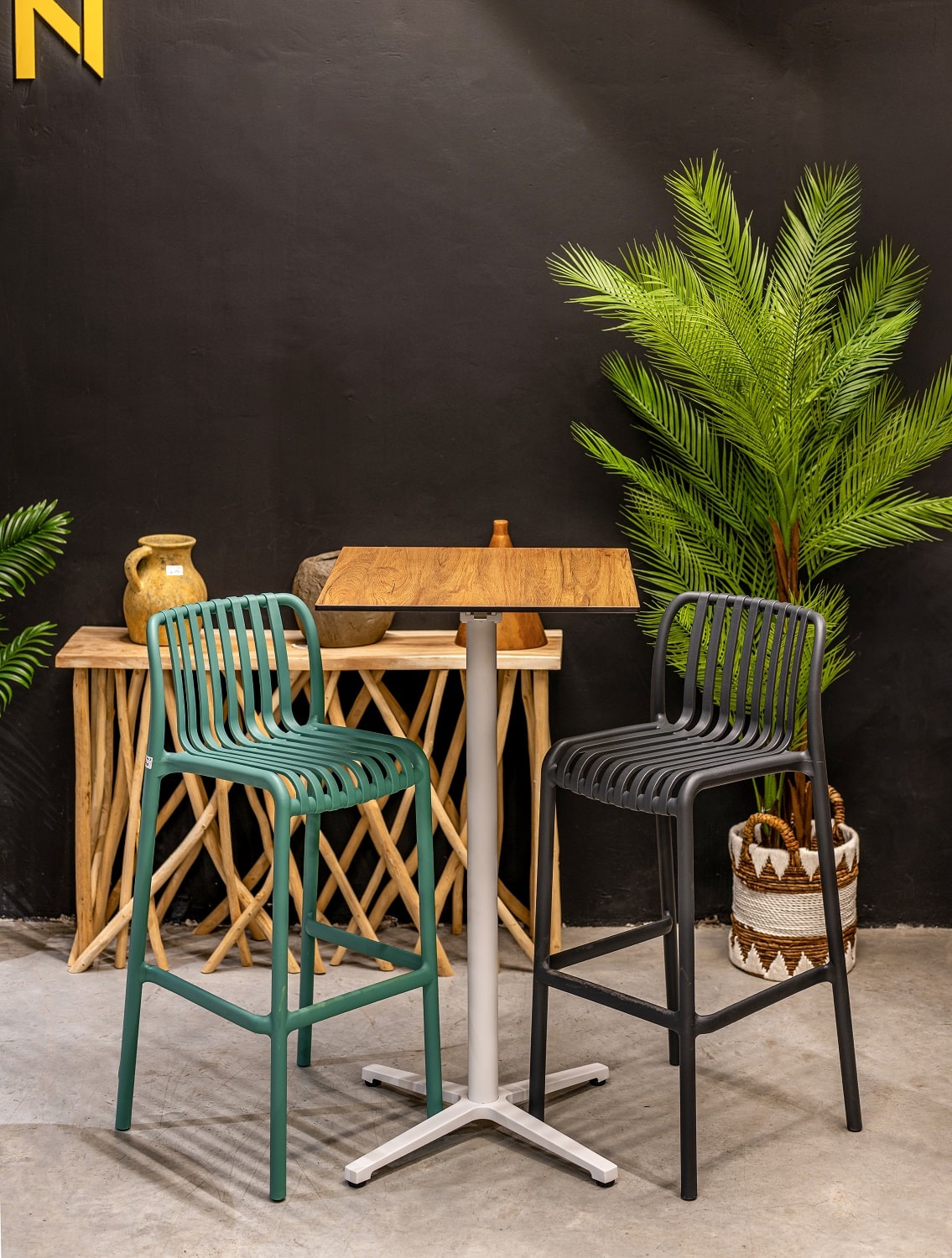 הכיסאות בר עשויים פלסטיק קשיח ומסיבי.