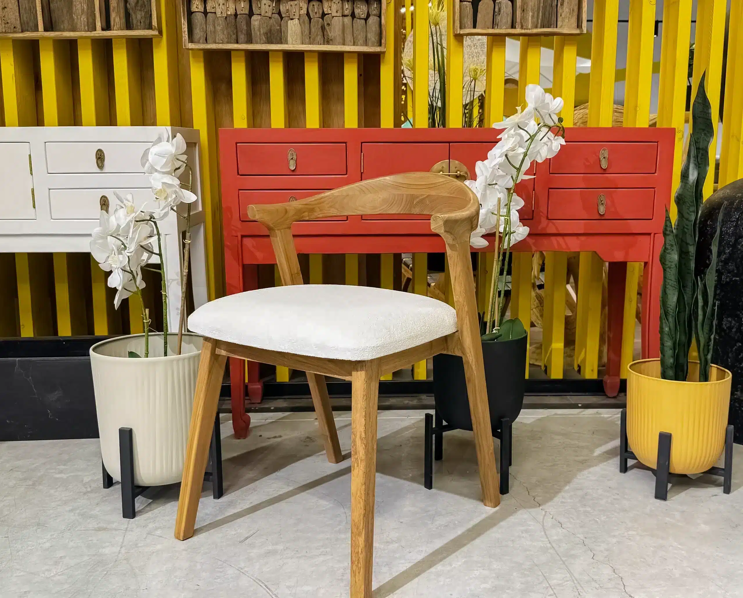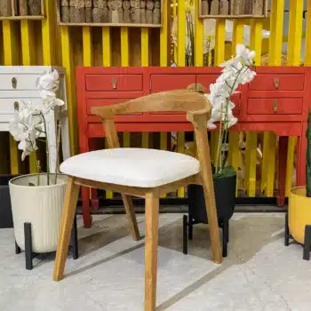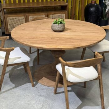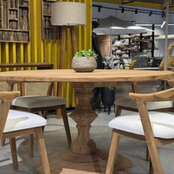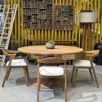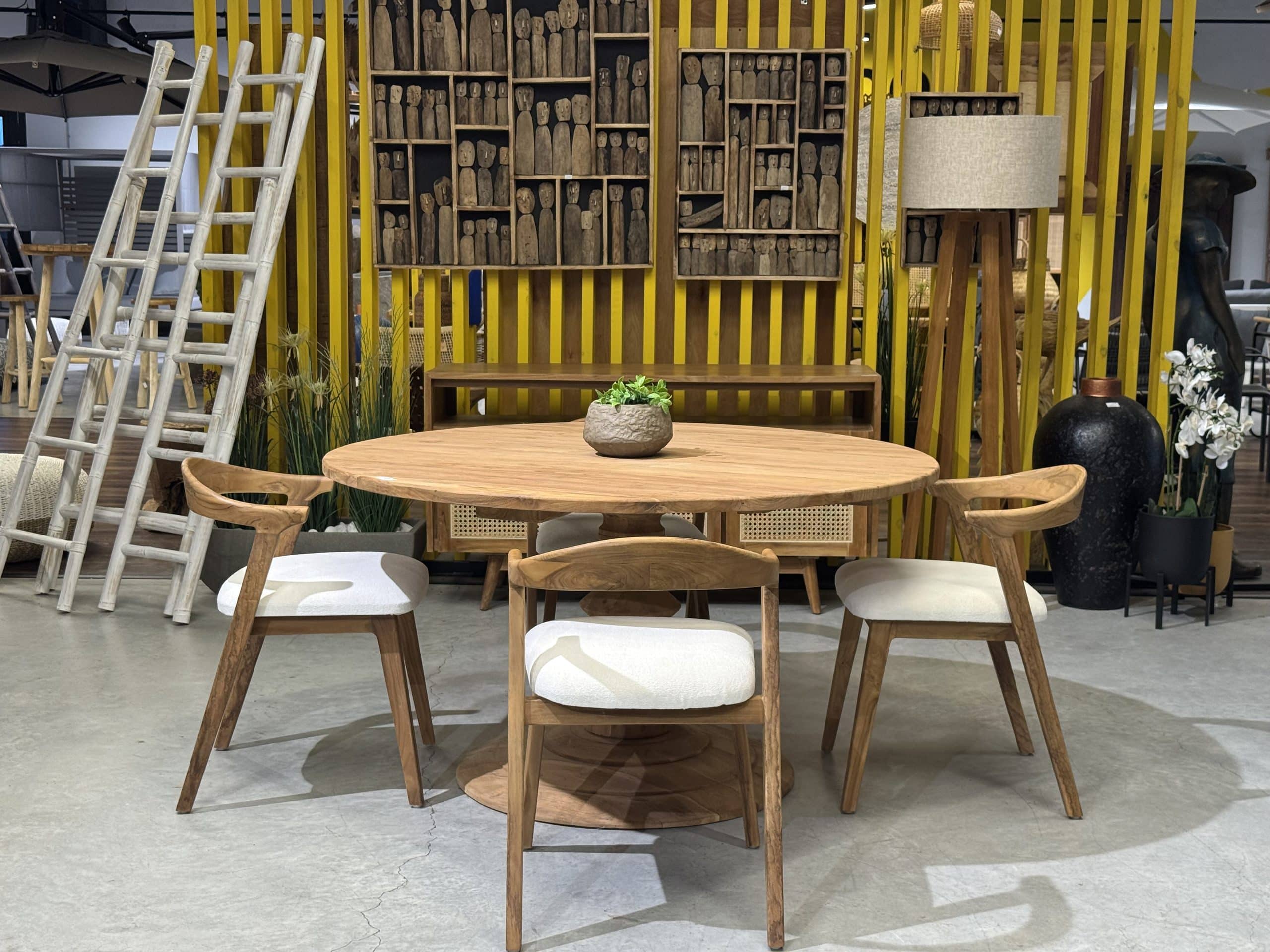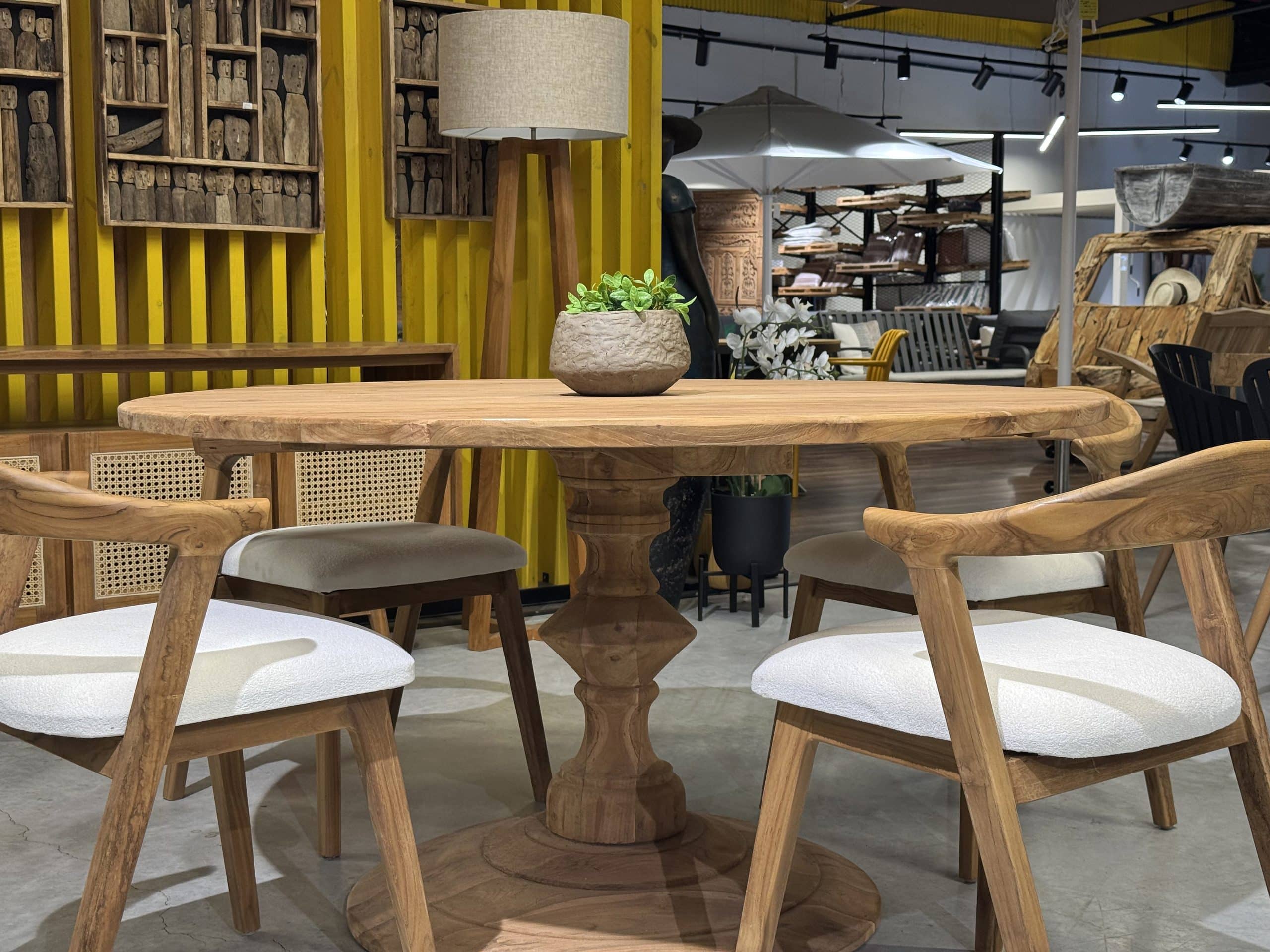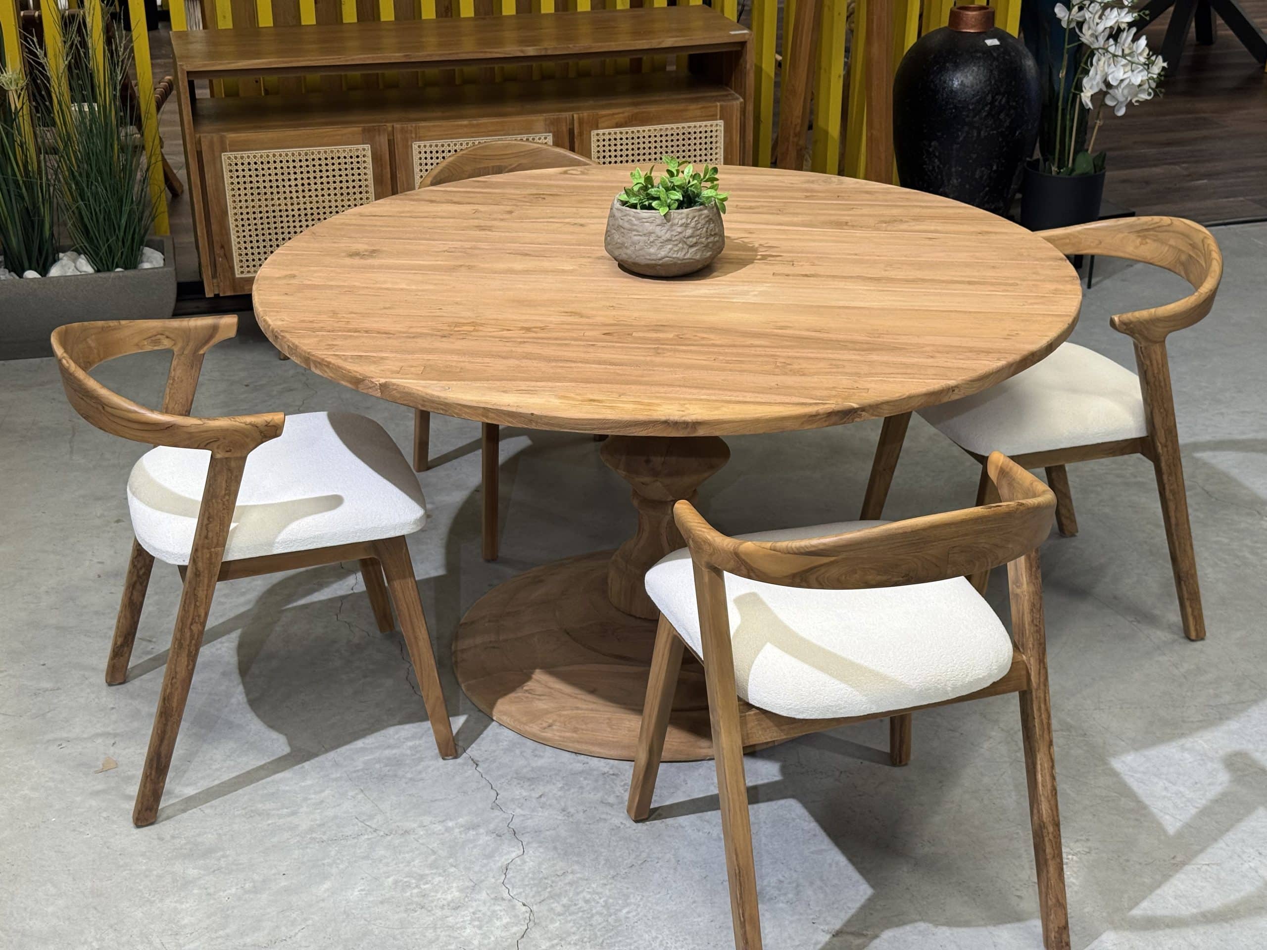 השולחן והכיסאות בנויים מעץ טיק אינדונזי מלא ומיועדים