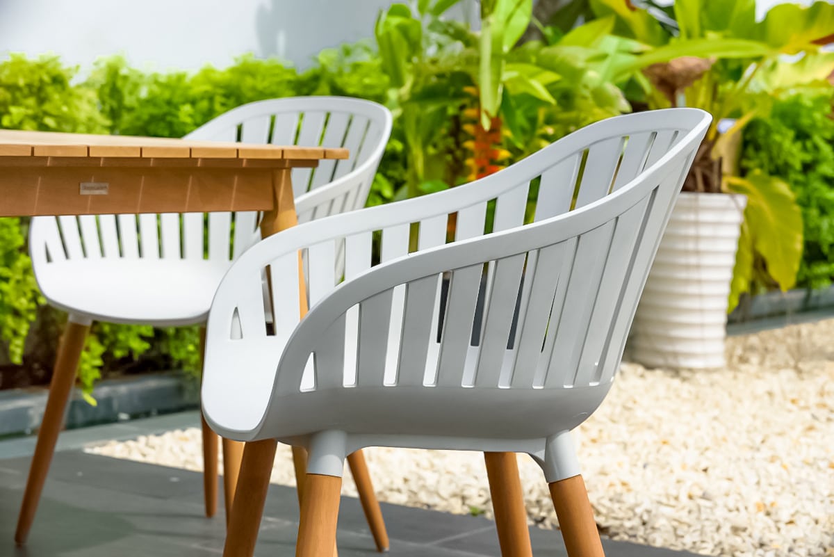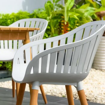 כיסא פלסטיק ABS חזק במיוחד בשילוב רגלי אקליפטוס FSC.