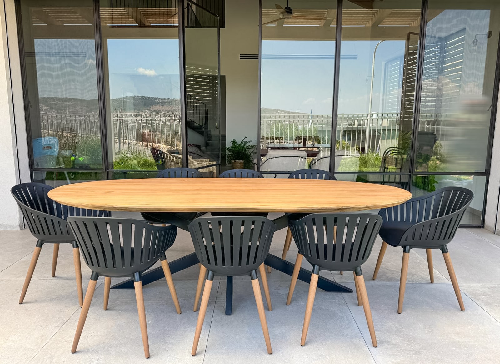 שולחן אובאלי מרשים אשר מתאים גם לשימוש חוץ.