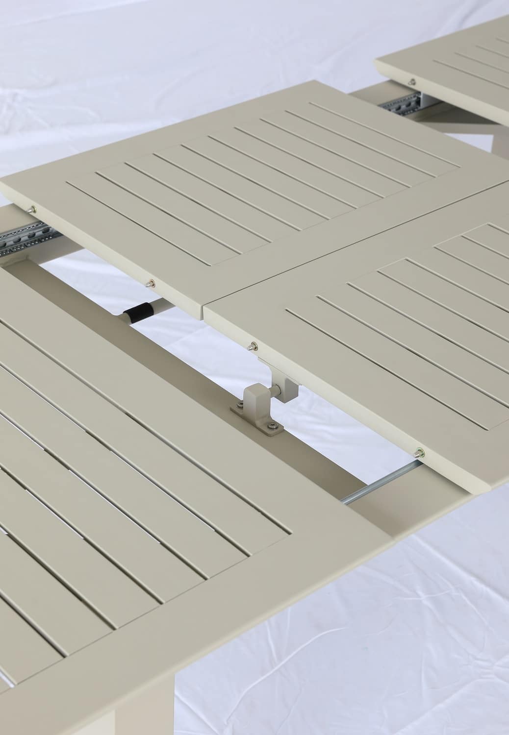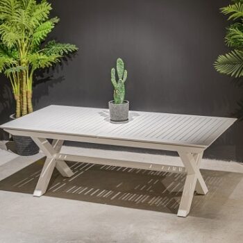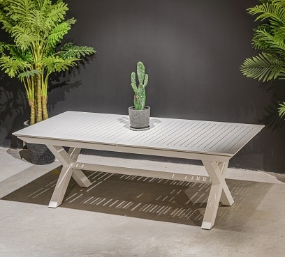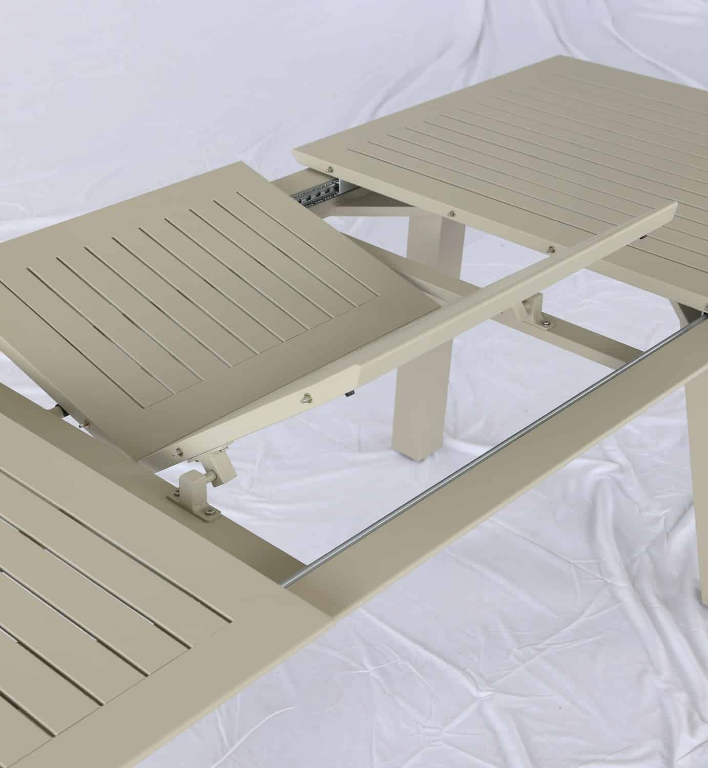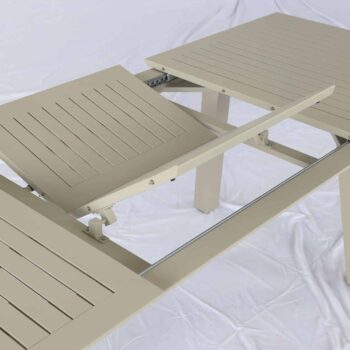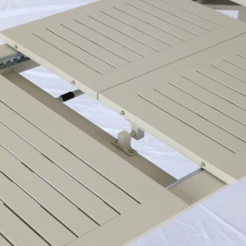 שולחן נפתח העשוי אלומיניום “אל חלד” במידה 214*100 ס”מ, נפתח ל-300 ס”מ.