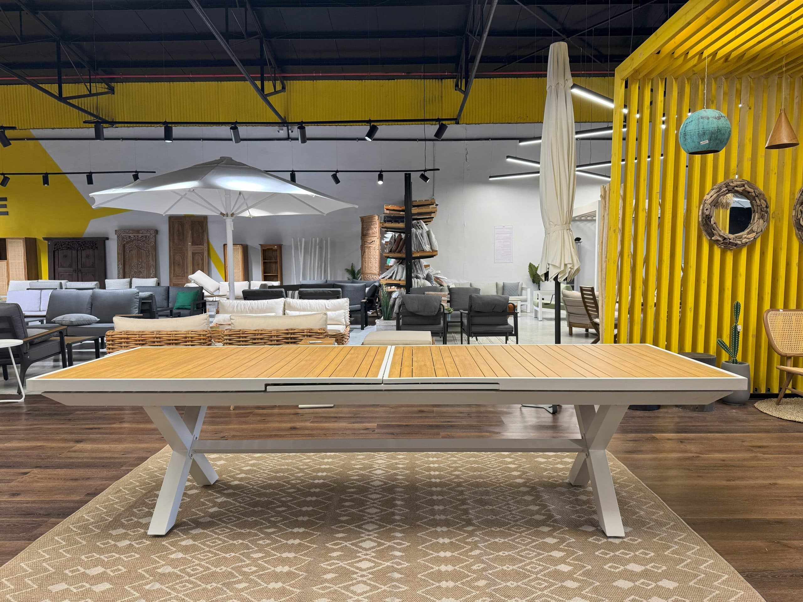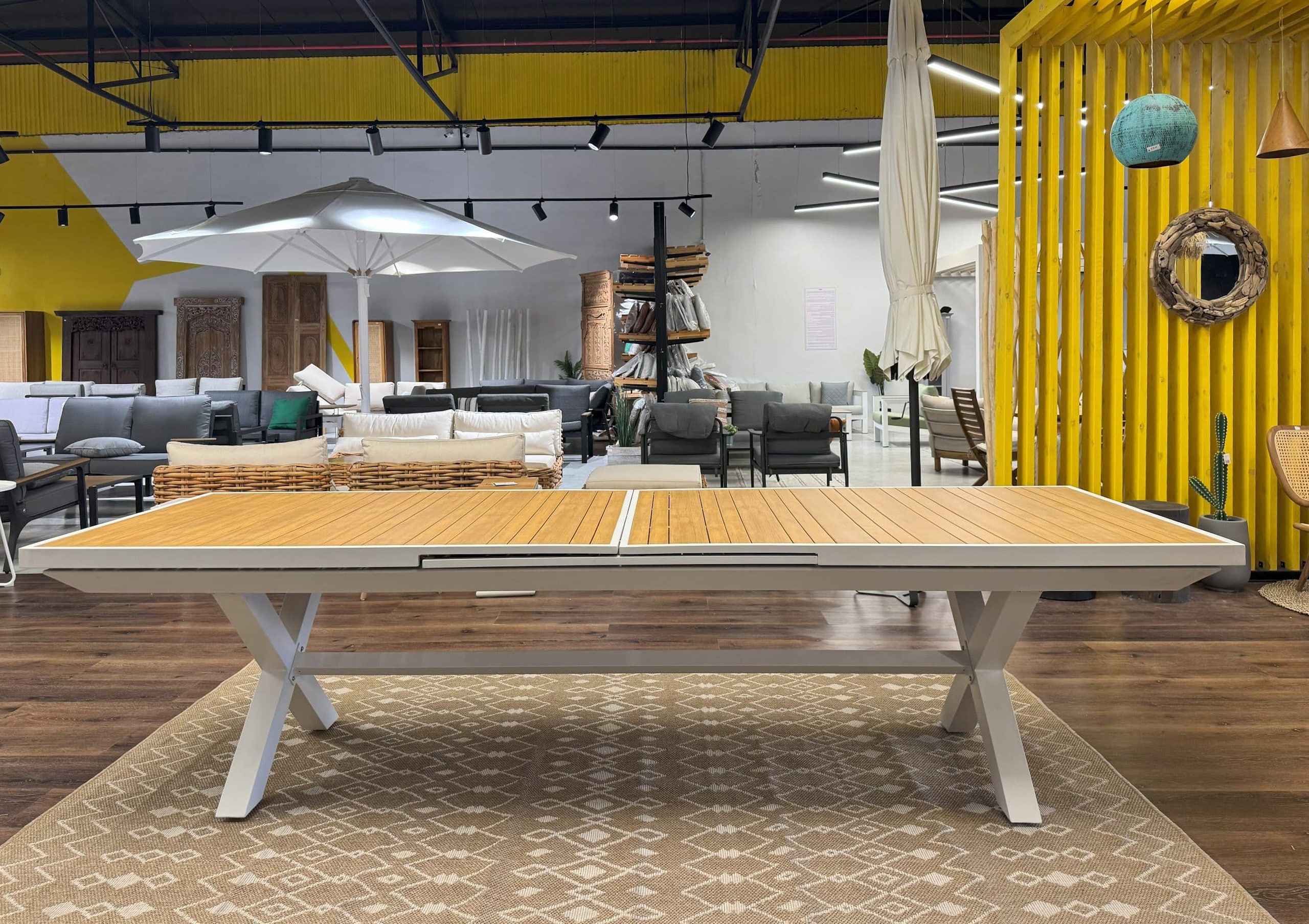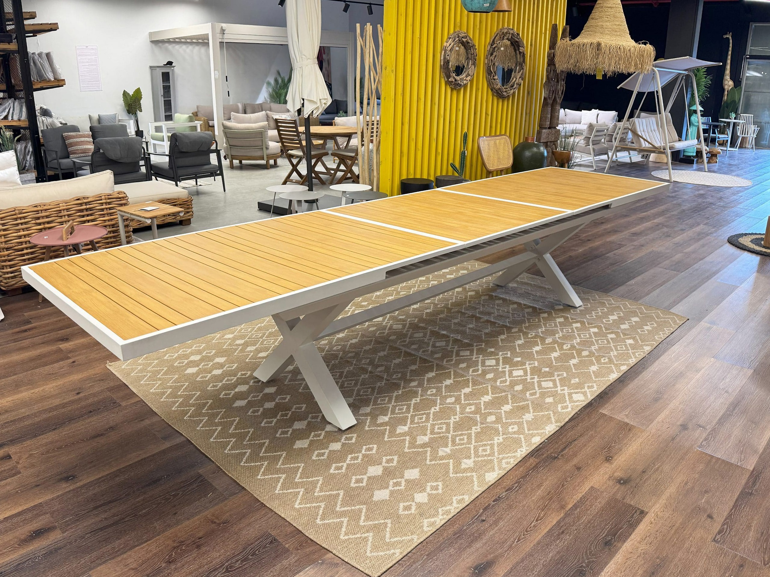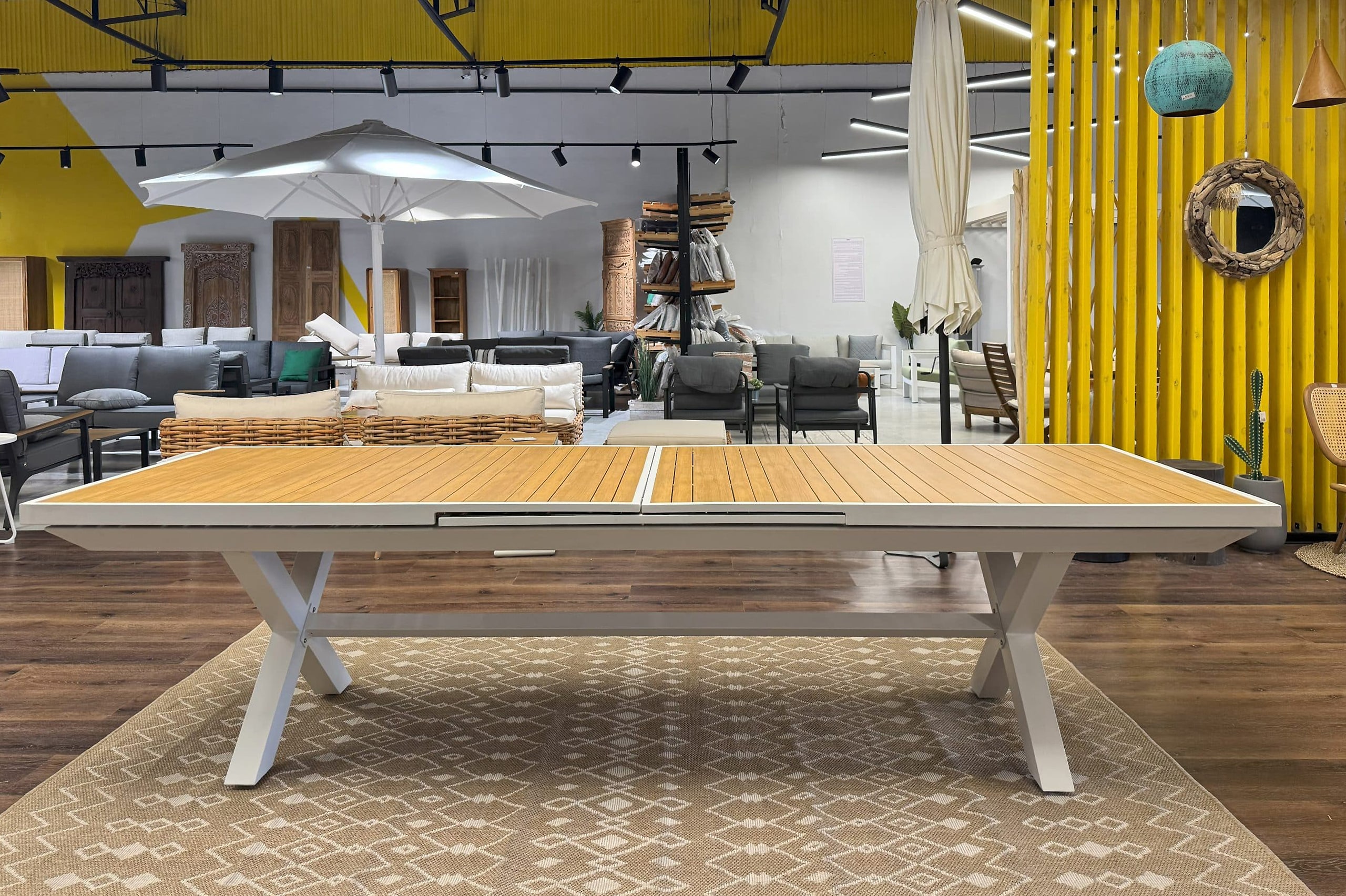 שולחן נפתח העשוי אלומיניום “אל חלד” במידה 295*100 ס”מ, נפתח ל-400 ס”מ.