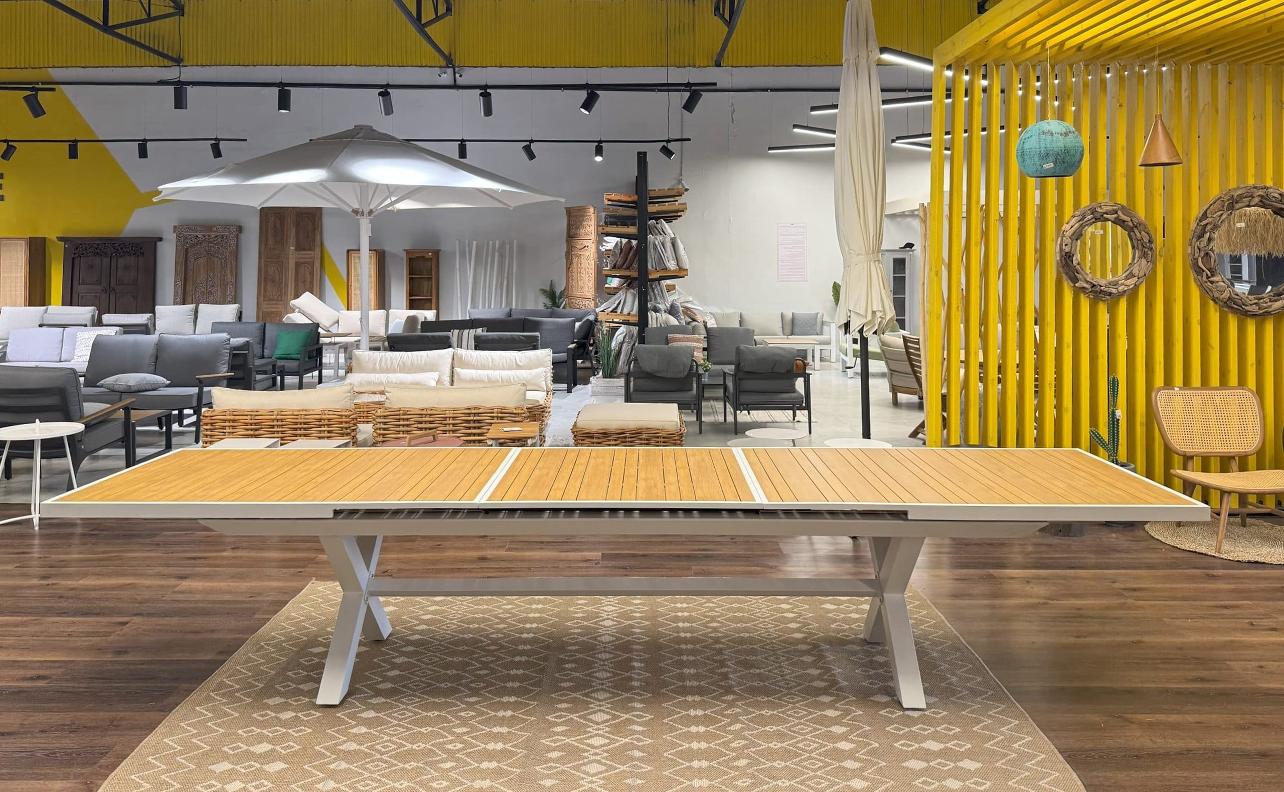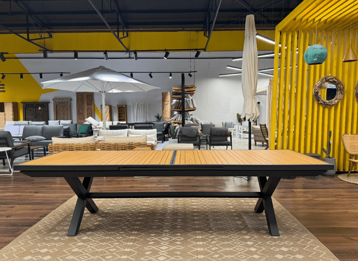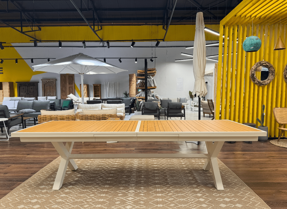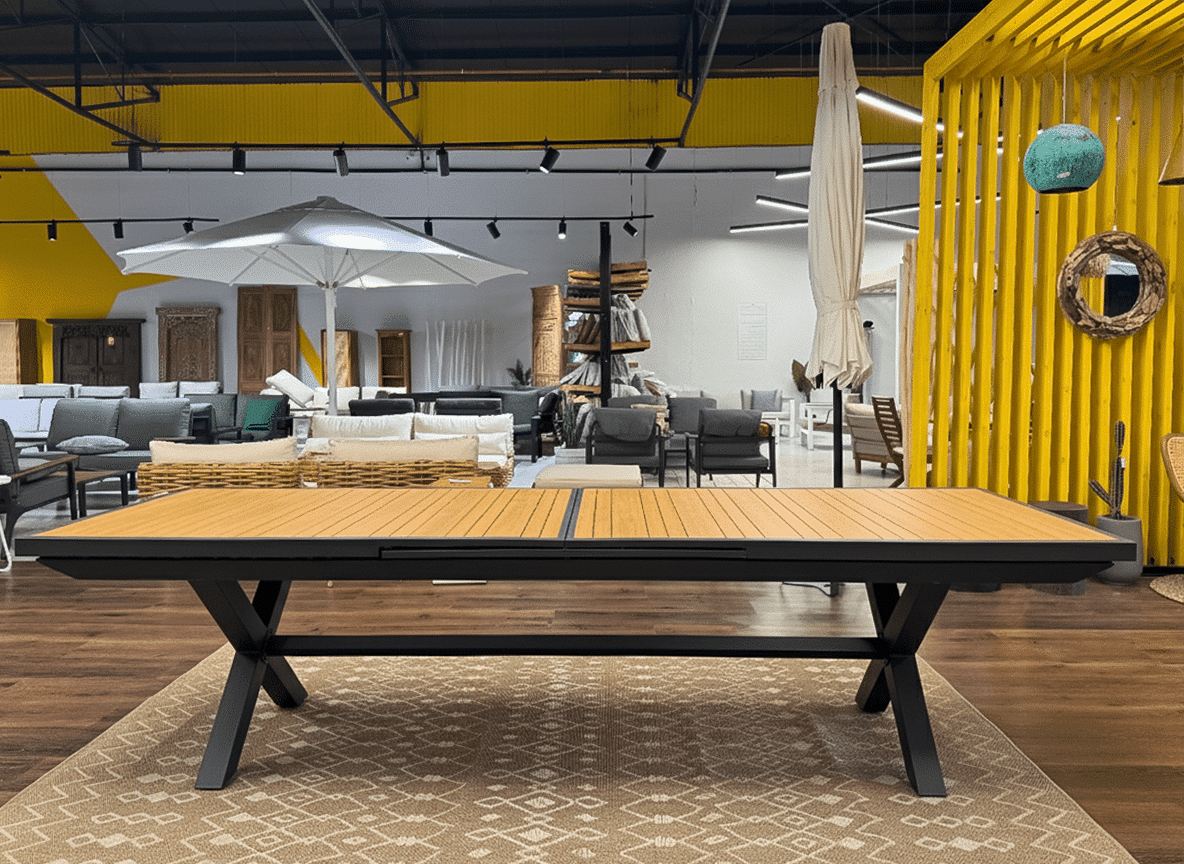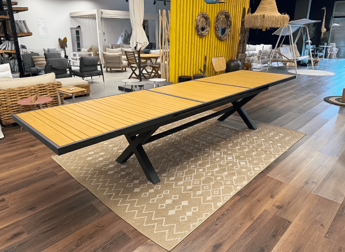 שולחן נפתח העשוי אלומיניום “אל חלד” במידה 295*100 ס”מ, נפתח ל-400 ס”מ.