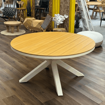 שולחן עגול העשוי אלומיניום “אל חלד” בקוטר 150 ס”מ.