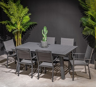 שולחן נפתח העשוי אלומיניום “אל חלד” במידה 175*100 ס”מ, נפתח ל-240 ס”מ.