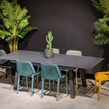 שולחן נפתח העשוי אלומיניום “אל חלד” במידה 175*100 ס”מ, נפתח ל-240 ס”מ.