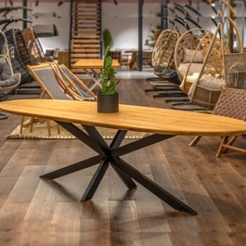 שולחן אובאלי מרשים אשר מתאים גם לשימוש חוץ.