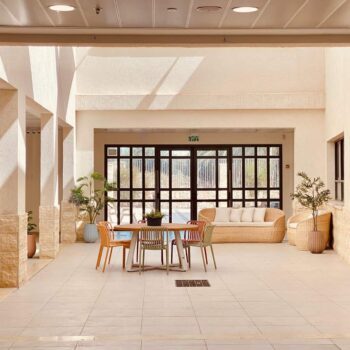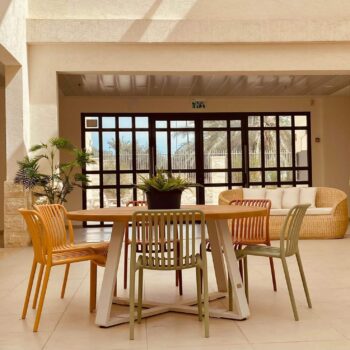 שולחן מעוצב מעץ מלא בשילוב רגלי אלומיניום “אל חלד”, שולחן מרשים ביופיו.